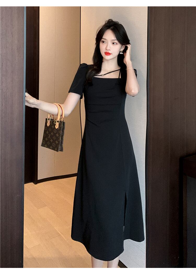 フランスのシックな見事なドレスハイエンド気質レディ女神ファンハイエンドウエストスリットパフスリーブロングスカート yingd28448256567