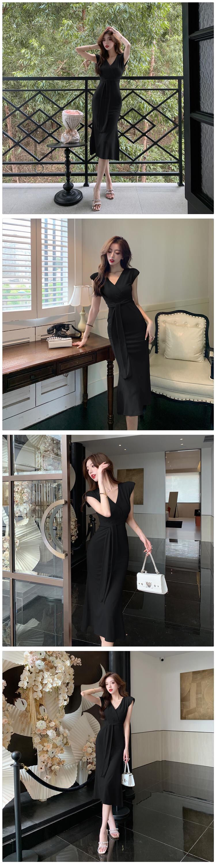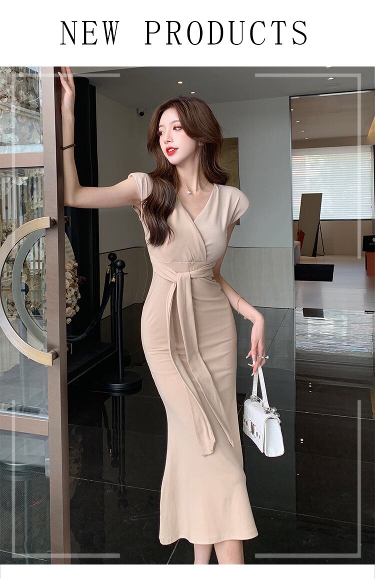 ユニークなドレス夏のハイエンド 2022 デザイン ニッチ包帯セクシーな V ネック ヒップ丈ドレスは薄くて背の高い夏 サマー 夏物 Vネック yingd12962655394