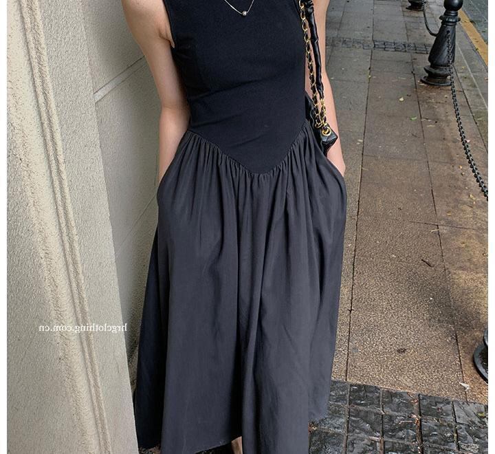 シックで独特なニッチなデザインの黒のロングスカートは細くて背が高く、夏の高級感があり、ロイヤルシスター、軽やかで馴染みのあるノースリーブのワンピースの女性です。 ブラック サマー 夏物 yingd36310537247