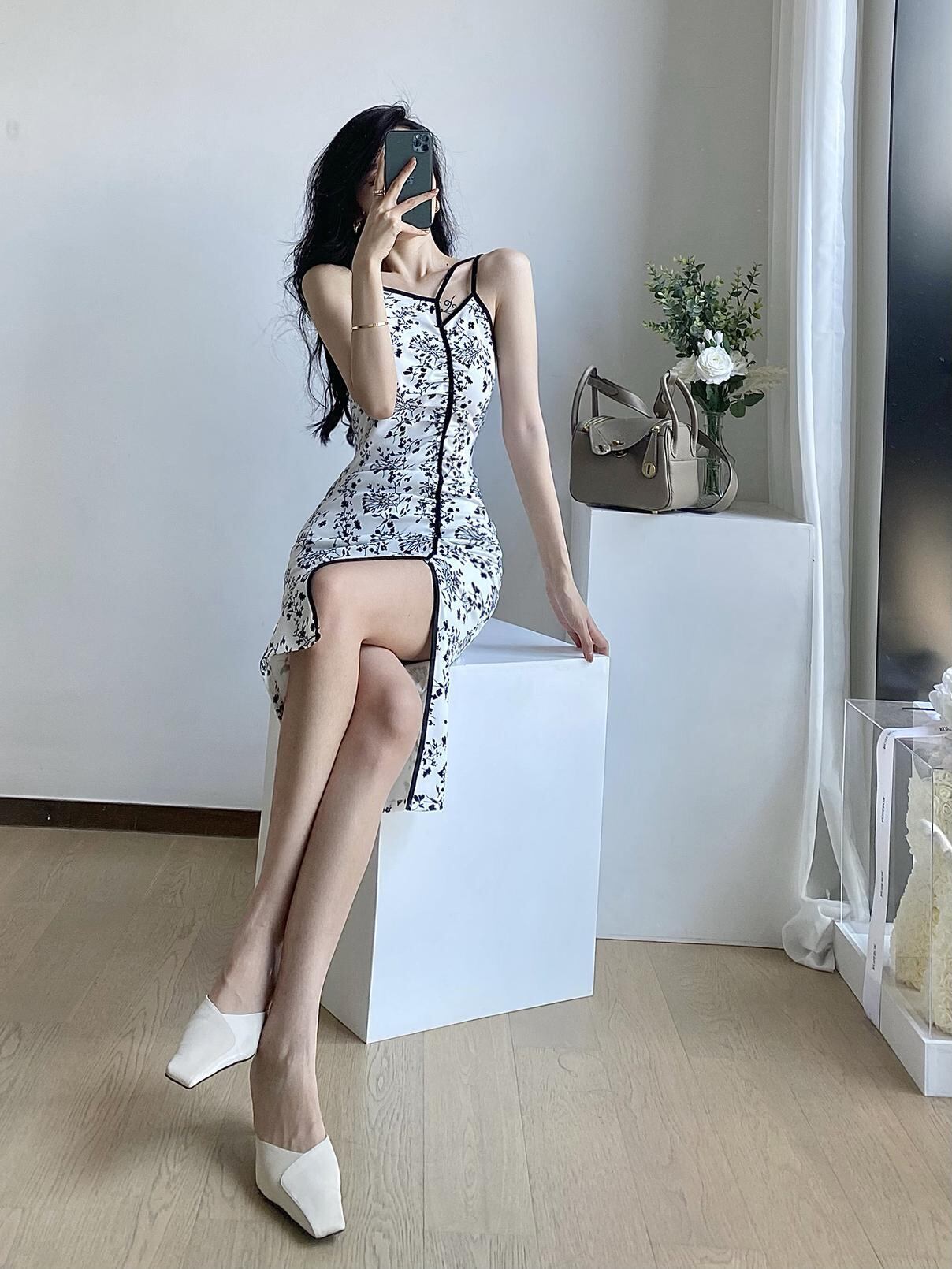 フランスのレトロな気質の女性らしさのセクシーなロイヤル シスター ライト調理風ブロークン フラワー改良版チャイナ サスペンダー ドレス女性の夏 サマー 夏物 フラワーデザイン yingd18493548613