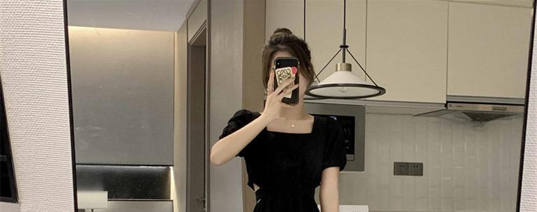 フランスのレトロなヘップバーンスタイルのスクエアネックのドレスは、薄くて夏の気質の高い女性のセクシーな慎重なマシンショーウエストのドレスです サマー 夏物 スクウェア yingd59288747132