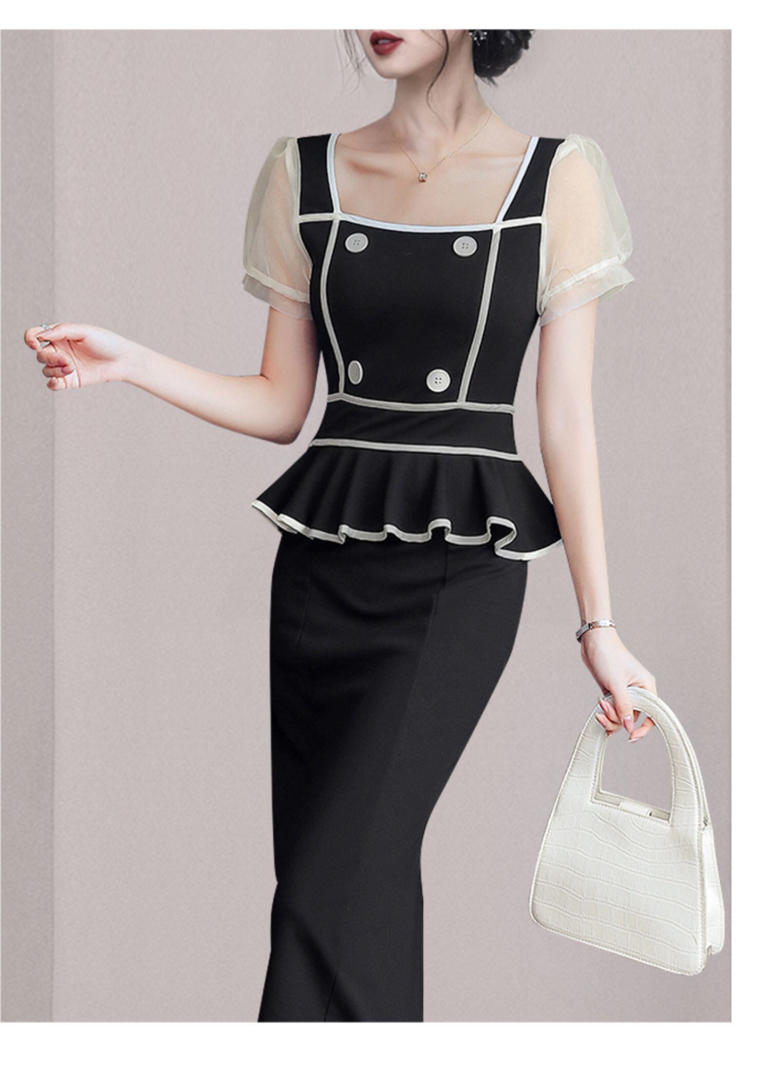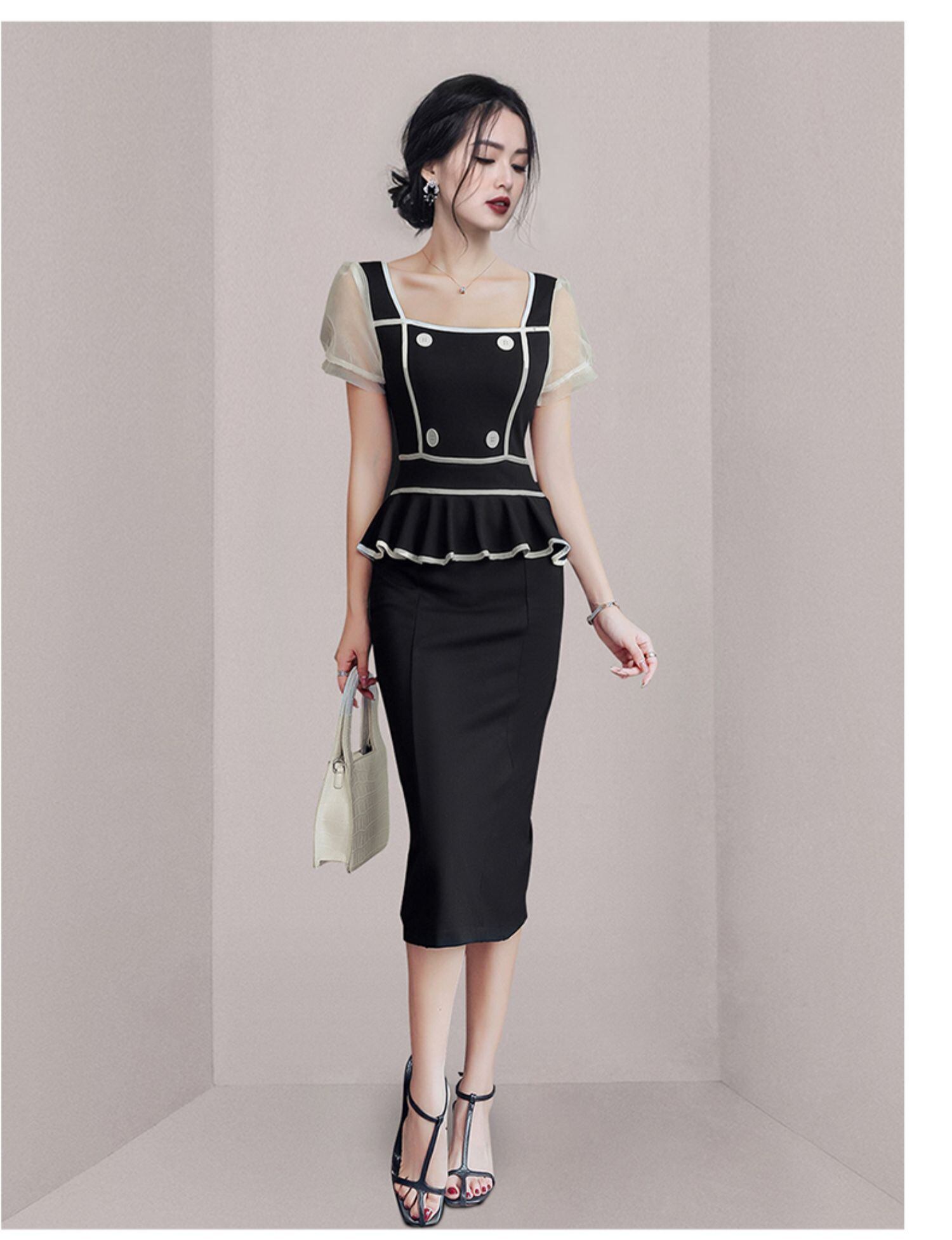 フランスのレトロなヘップバーン スタイル リトル ブラック ドレス気質ライト高級レディース ハイエンド センス ウエスト セクシー バッグ ヒップ ドレス女性の夏 サマー 夏物 yingd66433490810