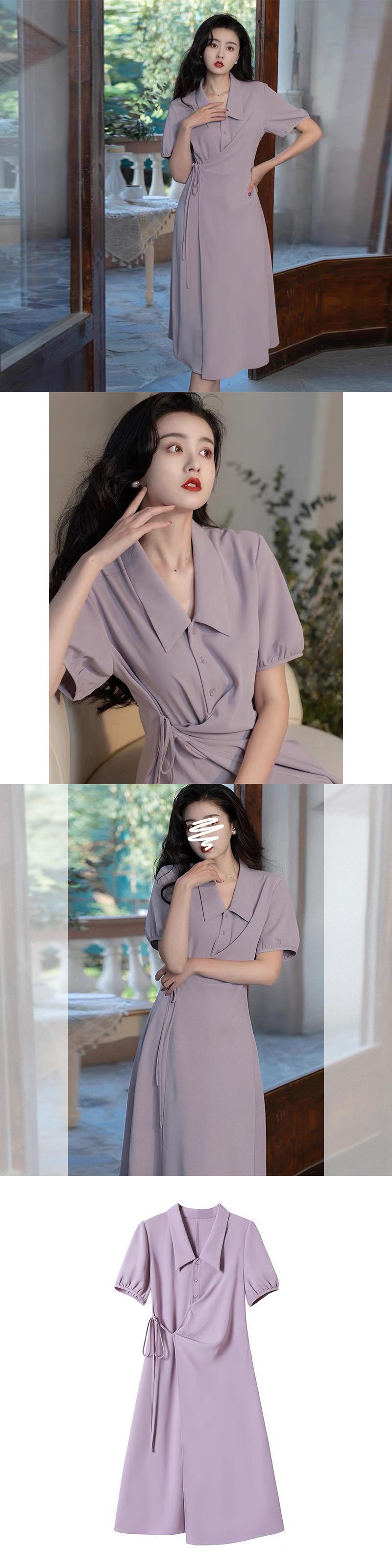 シックで美しいスカート ウエスト スリム 気質 ハイエンド ハイエンド ランタン スリーブ クリーム パープル ドレス サマー レディース ランタンスリーブ 夏物 yingd11836103219
