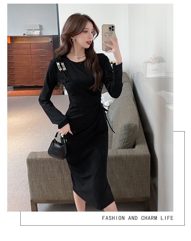 2022 新秋ドレス気質女神ファンデザインセンスニッチ中空アウトウエストセクシーなスリット長袖ドレス女性 ロング オータム 秋物 yingd20975009565