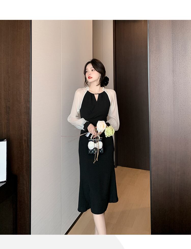 2022年秋のティーブレイクフレンチブラックドレスシックでユニークなスカートウエストの気質スプリットロングスカート オータム 秋物 yingd36858205527