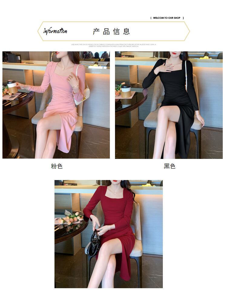 初秋のファッショナブルな女性のスカートの女性の新しい 2022 フレンチスクエアカラー長袖ヘップバーンスタイルドレススリットロングスカート オータム 秋物 スクウェア yingd96713747184