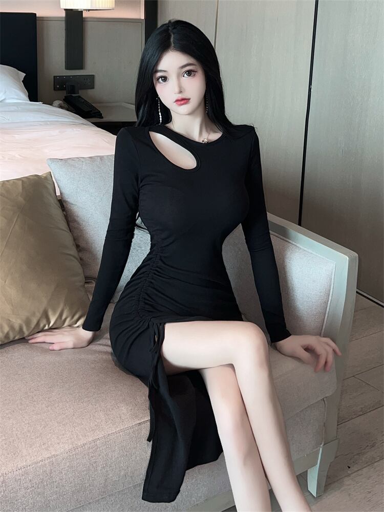 シックでユニークなスカートウエストプリーツドレス高度な秋の新 2022 スプリットバッグヒップドレスの女性 オータム 秋物 yingd29365341895