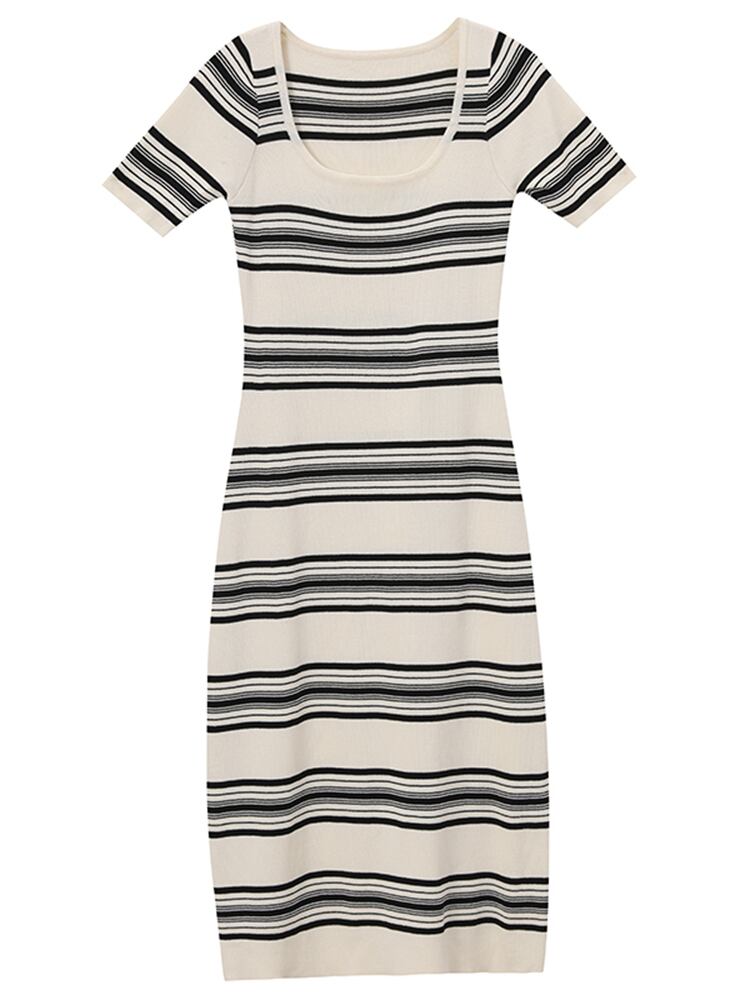 シックでユニークなスカートウエストスクエアネックドレス 2022 新しい女性のフレンチハイエンドレトロストライプドレス スクウェア yingd67351026825