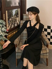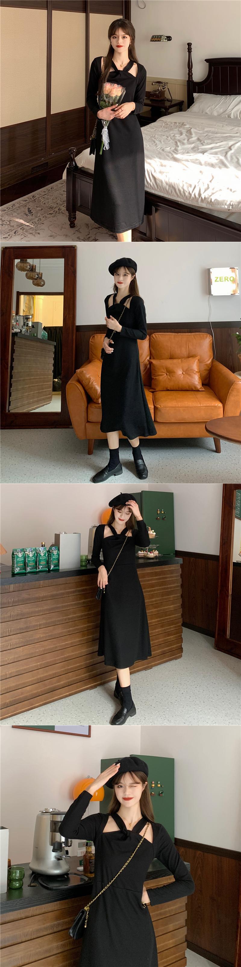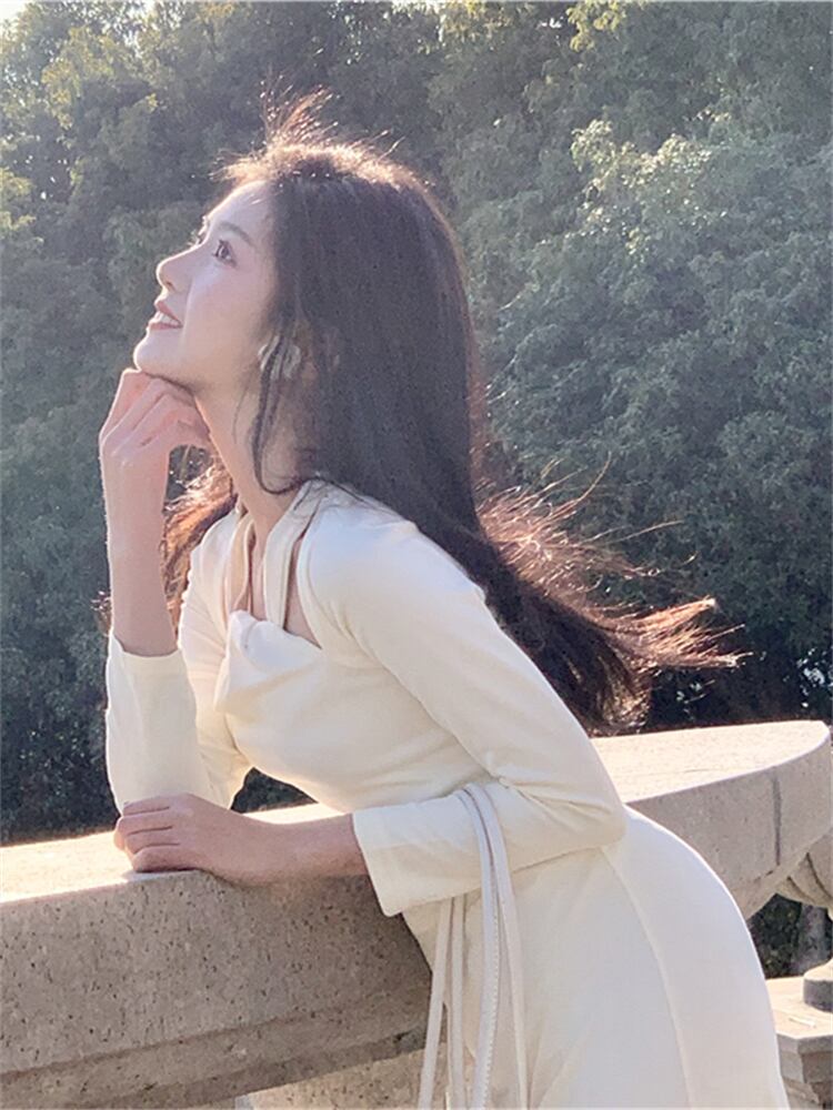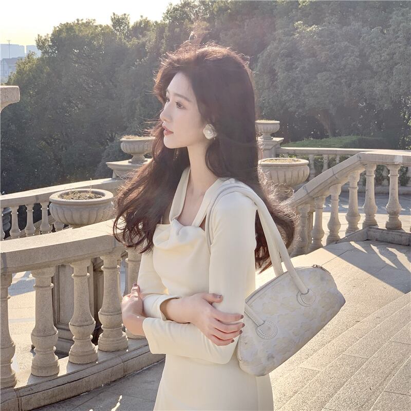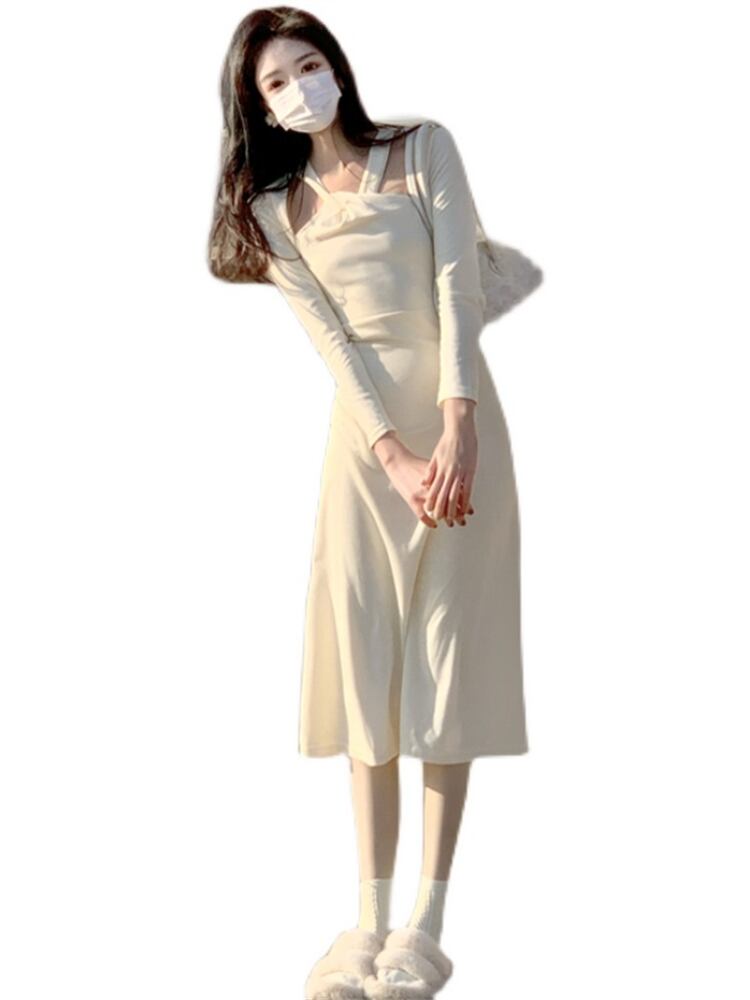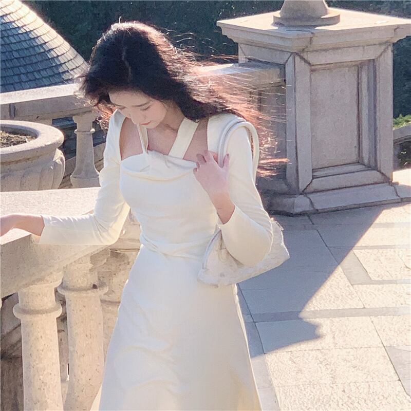 秋の婦人服 2022 新しい気質の女神ファン白いドレスハイエンド寒風ぶら下げネックロングスカート ホワイト オータム 秋物 yingd61342269178