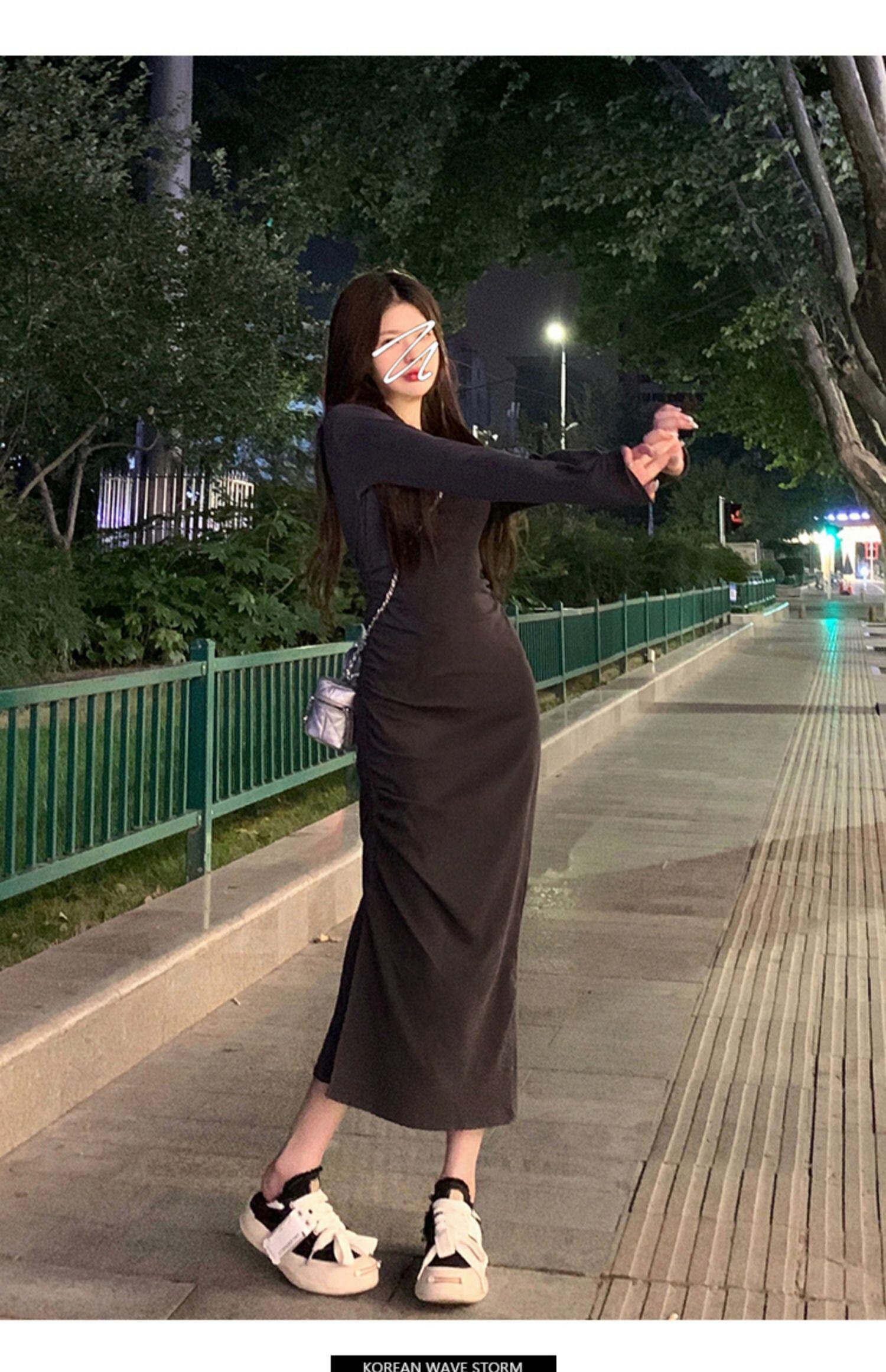 フランスのハイエンド秋のドレス新 2022 デザインニッチスカートポロドレス女性のウエストスリムロングスカート オータム 秋物 yingd61476818258