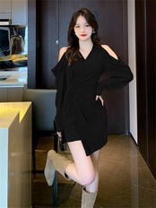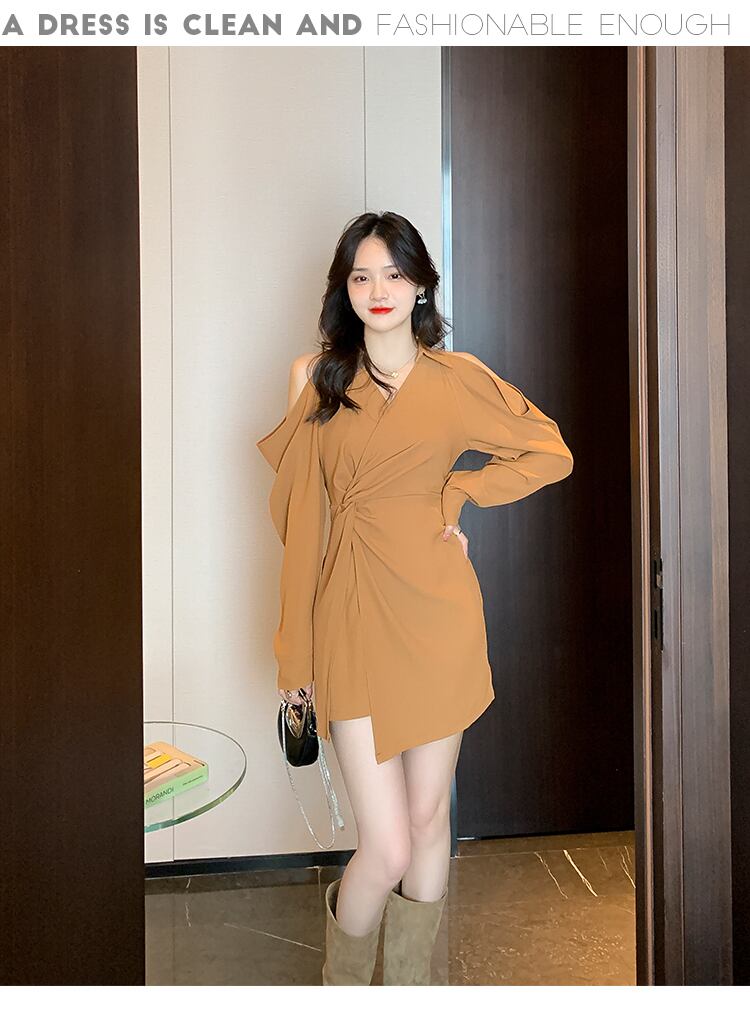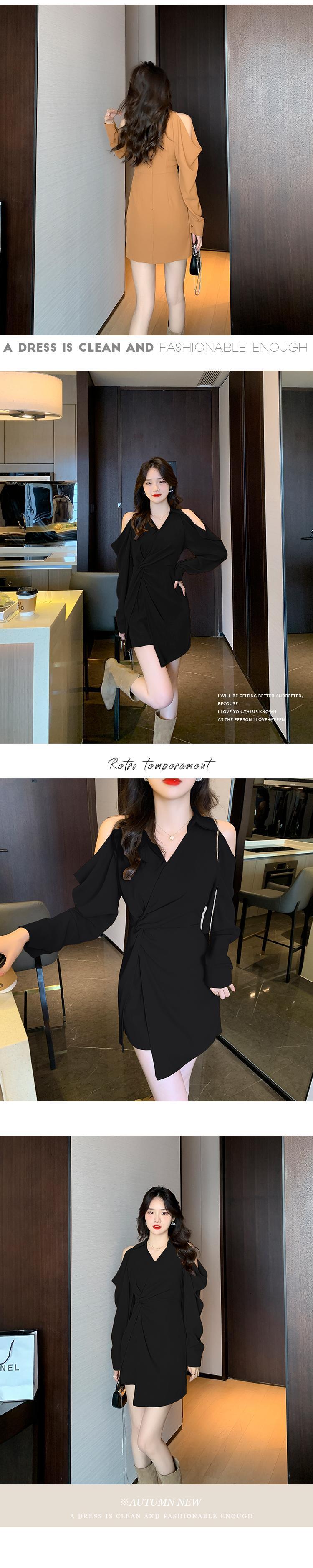 秋 2022 シックでユニークなスカートスリムウエスト長袖リトルブラックスカートスプリットウエストドレス女性 ロング オータム 秋物 yingd28740048360