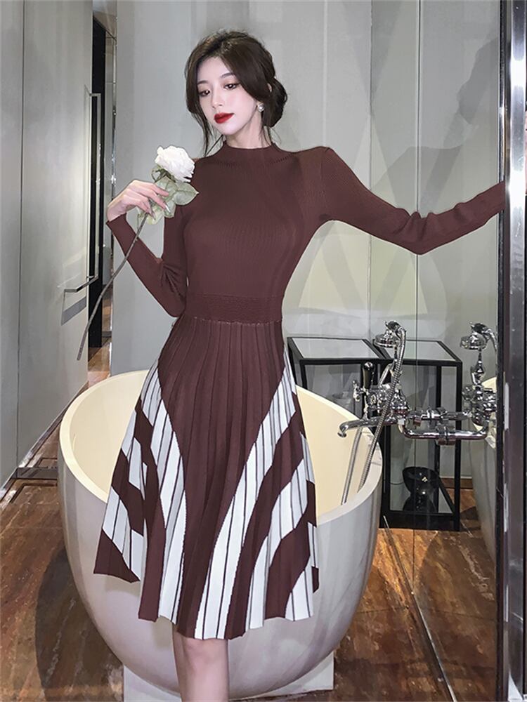 フランスの長袖初秋ウエストドレス気質レディースハイエンド小さなニット優しいベルサイユスカートの女性 ロング オータム 秋物 yingd61880217811