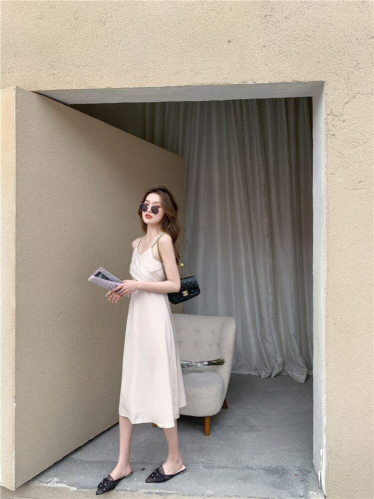 フランスのレトロなヘップバーン スタイル黒サスペンダー スカート スリム フィットと薄い気質デザイン センス ニッチ サスペンダー ドレス女性の夏 ブラック サマー 夏物 yingd59109947020