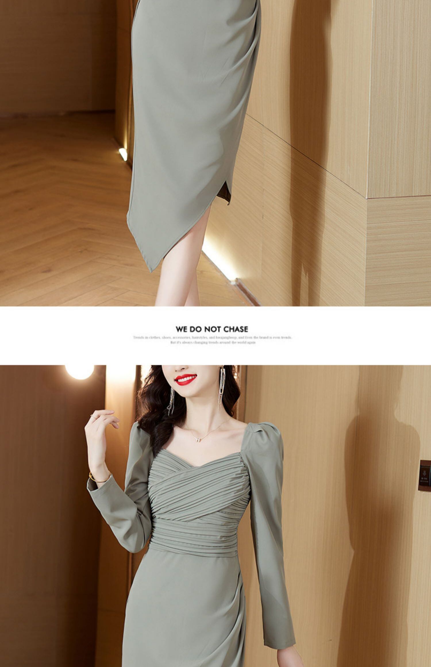 秋の新作 2022 フランスのハイエンド パフ スリーブ ドレス シックでユニークなスカート ウエスト薄いロング スカート オータム 秋物 yingd50920226617