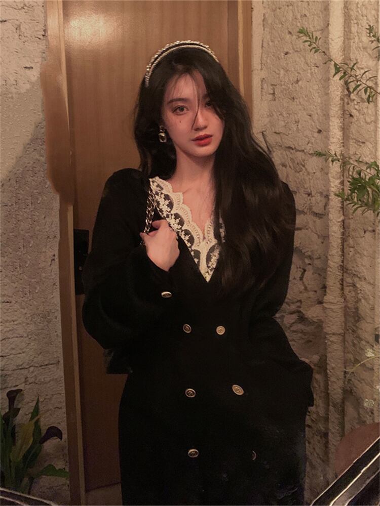 フランスのハイエンドのVネックのドレスの気質の有名人のハイエンドの小さな男2022年の新しい秋の長袖のリトルブラックドレス ロング オータム 秋物 yingd70998088271