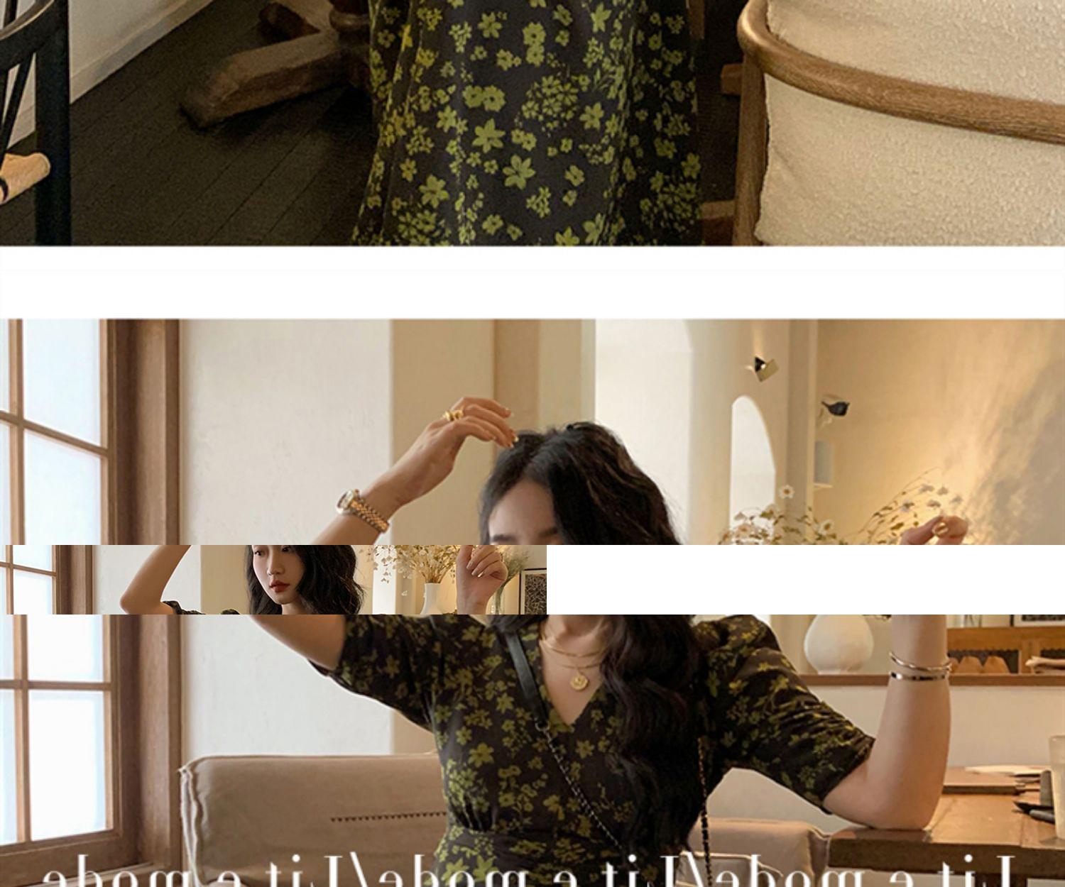 フランスのレトロなVネックの花柄のドレスは、薄くて背の高い夏のハイエンドのティーブレイクミルクの甘いウエストのドレスの夏の女性です 大人ガーリー スウィート キュート カジュアル サマー 夏物 yingd35663735687