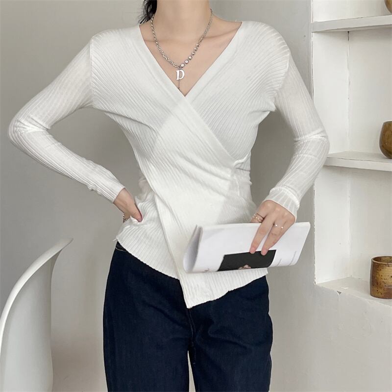 今年流行りの綺麗な初秋の新作トップス、ミルク系、ニットセーター、デザインセンス、スリムボトムスシャツ、女性 オータム 秋物 yingd60935367591