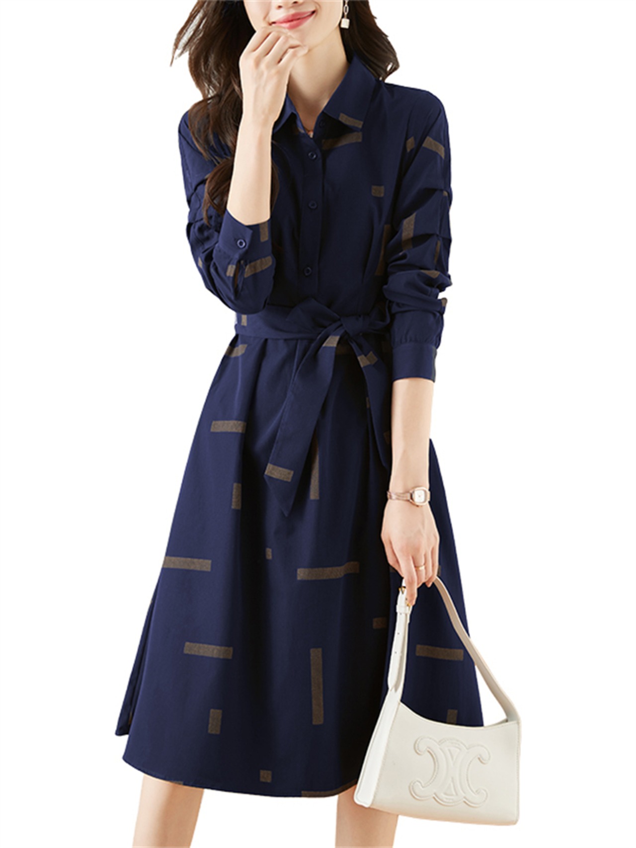 フレンチウエストロングスカート高品質ミルクスウィートスカートポロドレス女性の秋の新 2022 長袖レトロトレンド 大人ガーリー キュート カジュアル オータム 秋物 yingd47042946145