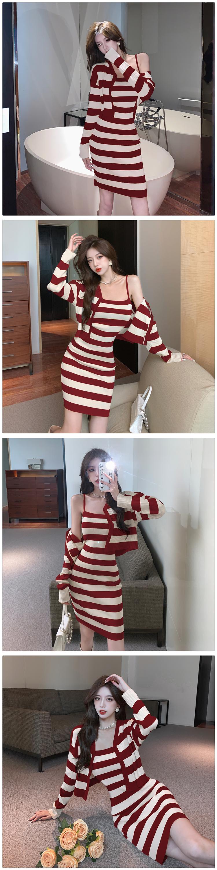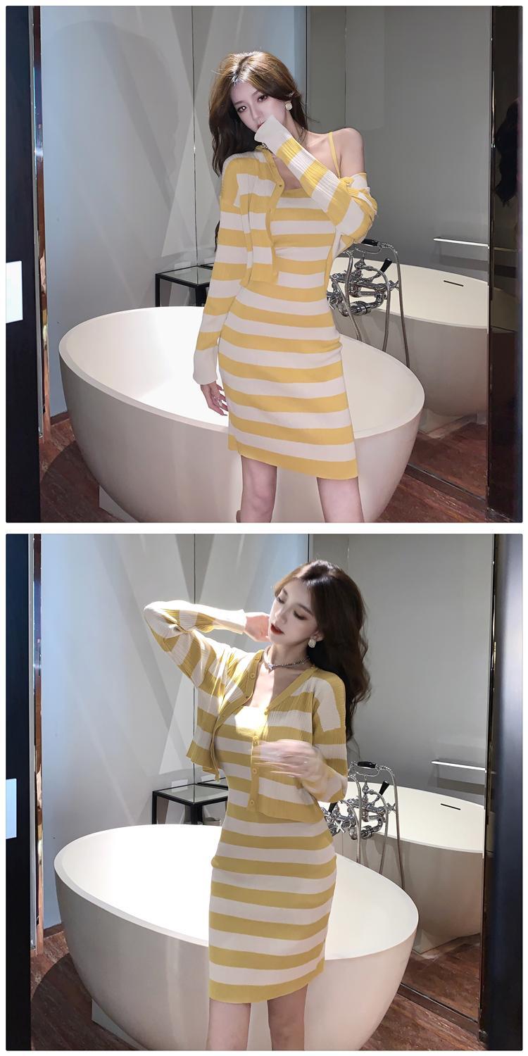 フランスのハイエンドワンショルダードレス 2022 新しい女性のシックなユニークなスーツスカートニットストライプヒップスカート yingd12890160089