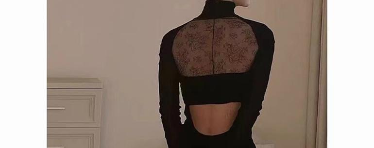シックでユニークなスカート 2022 秋の新しい黒長袖フレンチ ピンチウエスト ドレス ロング ブラック オータム 秋物 yingd16114372852