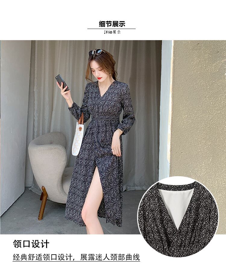 初秋のファッショナブルな女性の新しい 2022 フランスのハイエンド長袖花柄ドレスレトロ気質 V ネックドレス ロング オータム 秋物 Vネック yingd6122639918