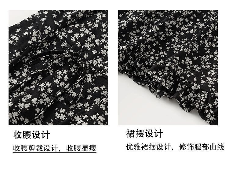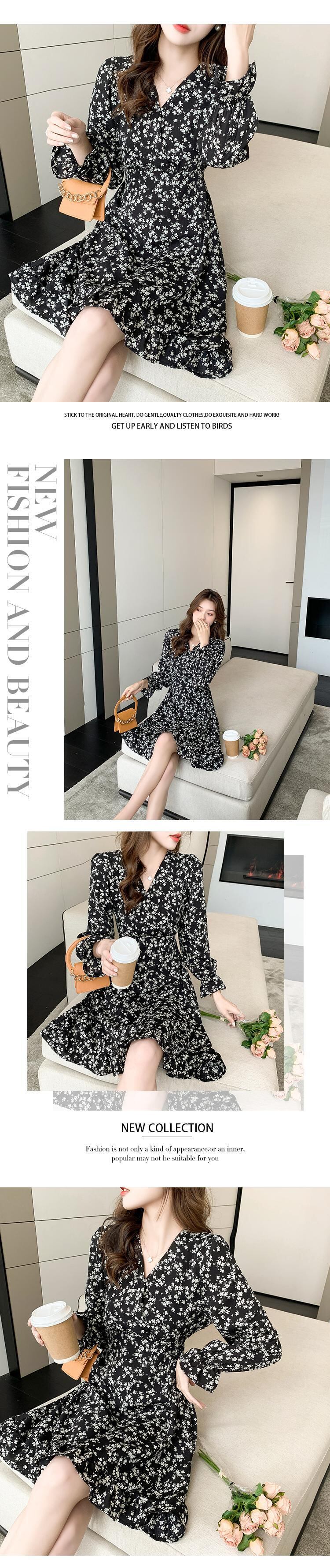 秋の新 2022 フランスのレトロなウエスト痩身女神ファン長袖 V ネックシフォン花柄ドレス ロング オータム 秋物 Vネック yingd42666632327