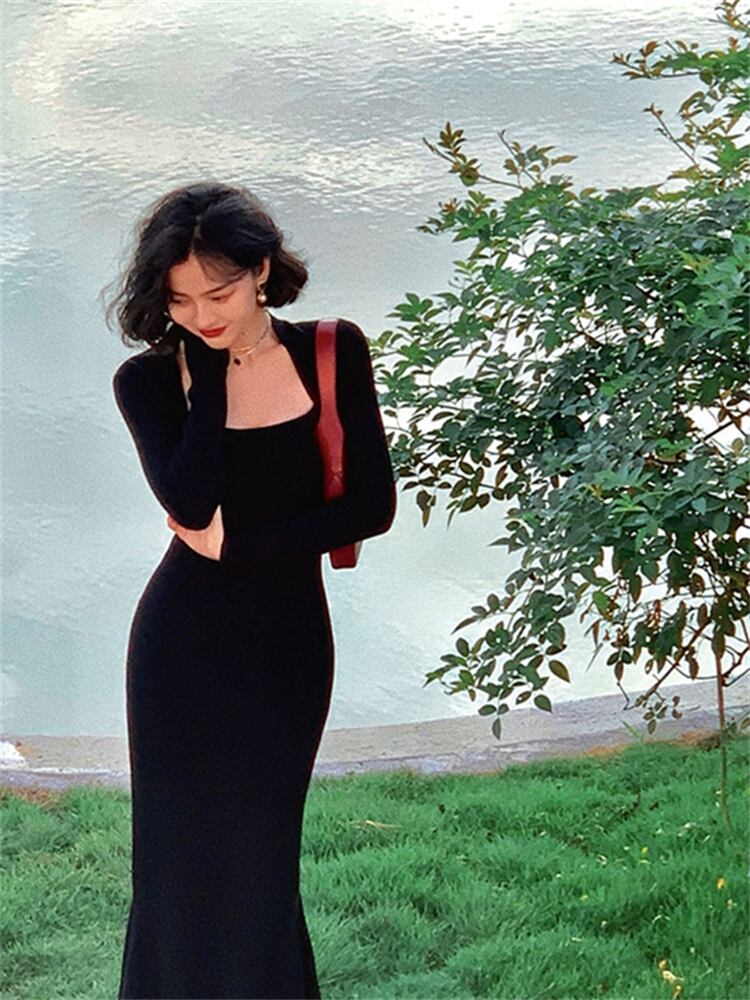 フランスのハイエンドミルクフフウエストドレス気質セレブハイエンドスモールマン秋の新 2022 ロングスカート オータム 秋物 yingd11339088403
