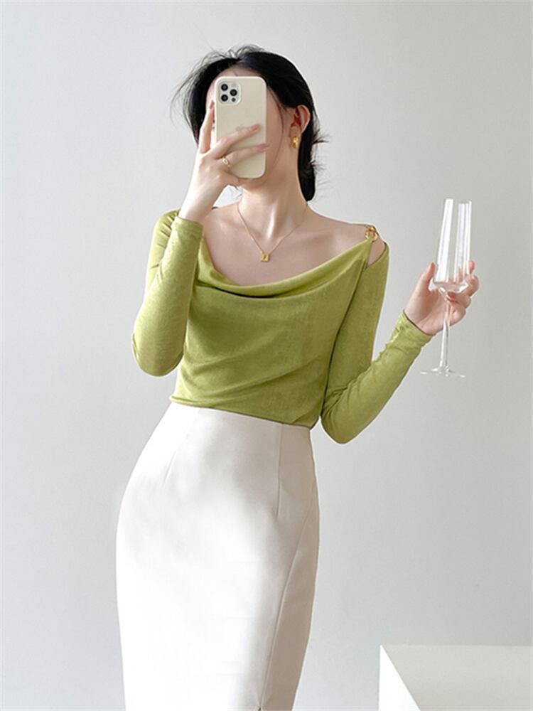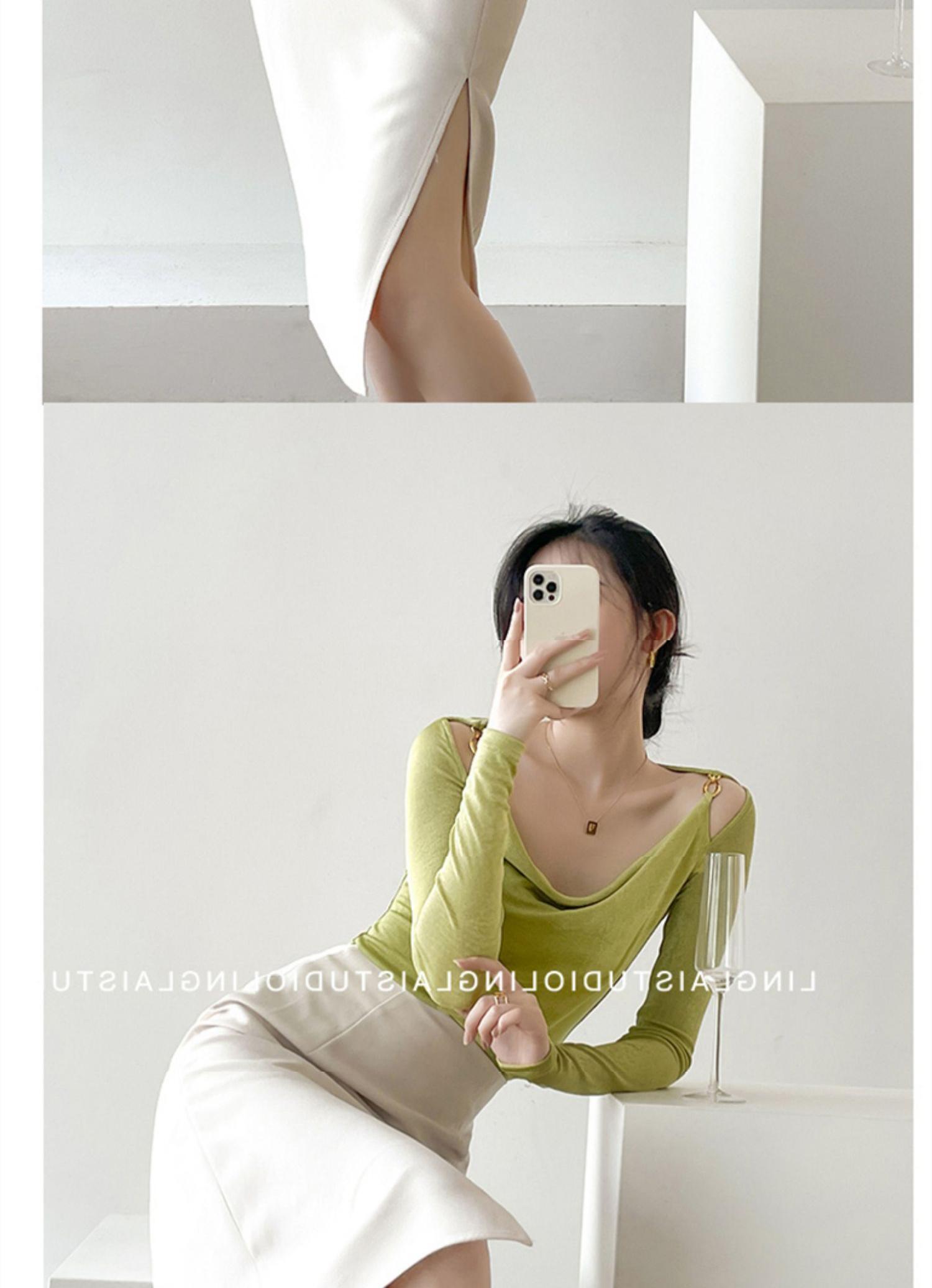 女性の2022年フレンチショート長袖トップス、トレンチコート、ボトムシャツ、女性のスイングカラーデザイン、秋のニッチTシャツ ロング オータム 秋物 yingd51830891769