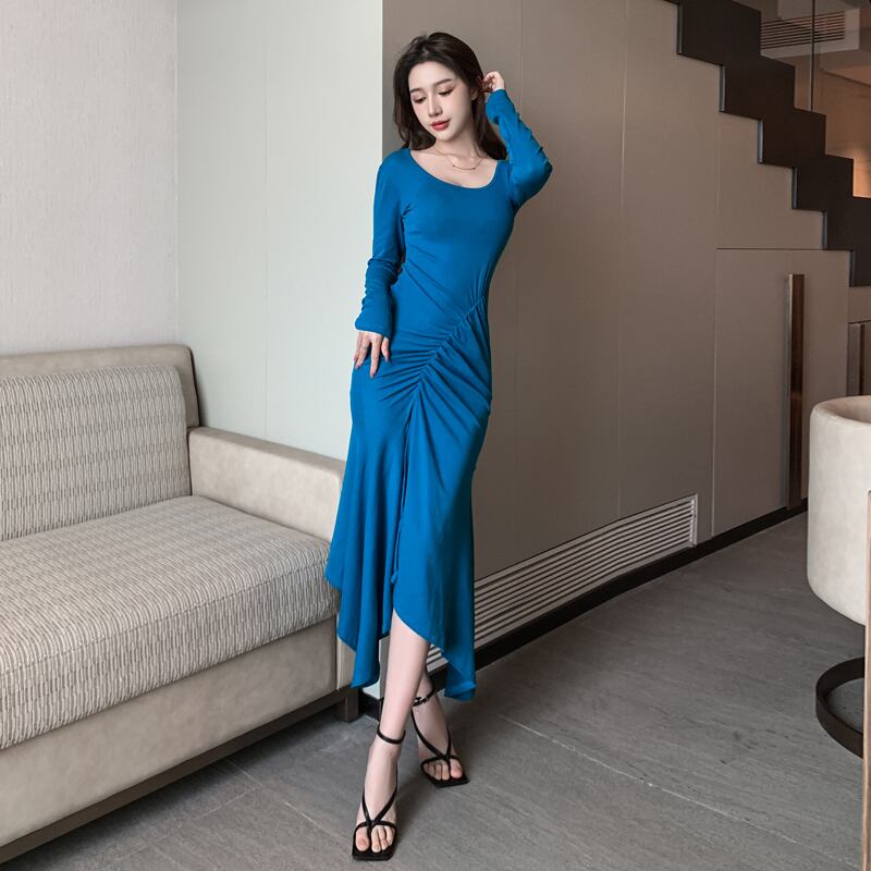 2022 初秋の女性のファッションヘップバーンスタイルスリットウエスト長袖ドレスシックでユニークなスカートパッケージヒップスカート ロング オータム 秋物 yingd44325213997