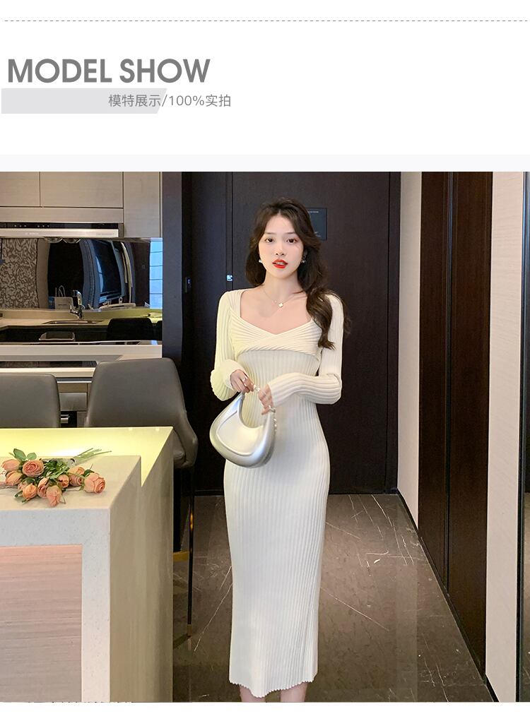 2022初秋フレンチホワイトティーブレイクミルクスウィートウエストドレス気質セレブハイエンドスモールニットロングスカート 大人ガーリー キュート カジュアル オータム 秋物 yingd54977371620