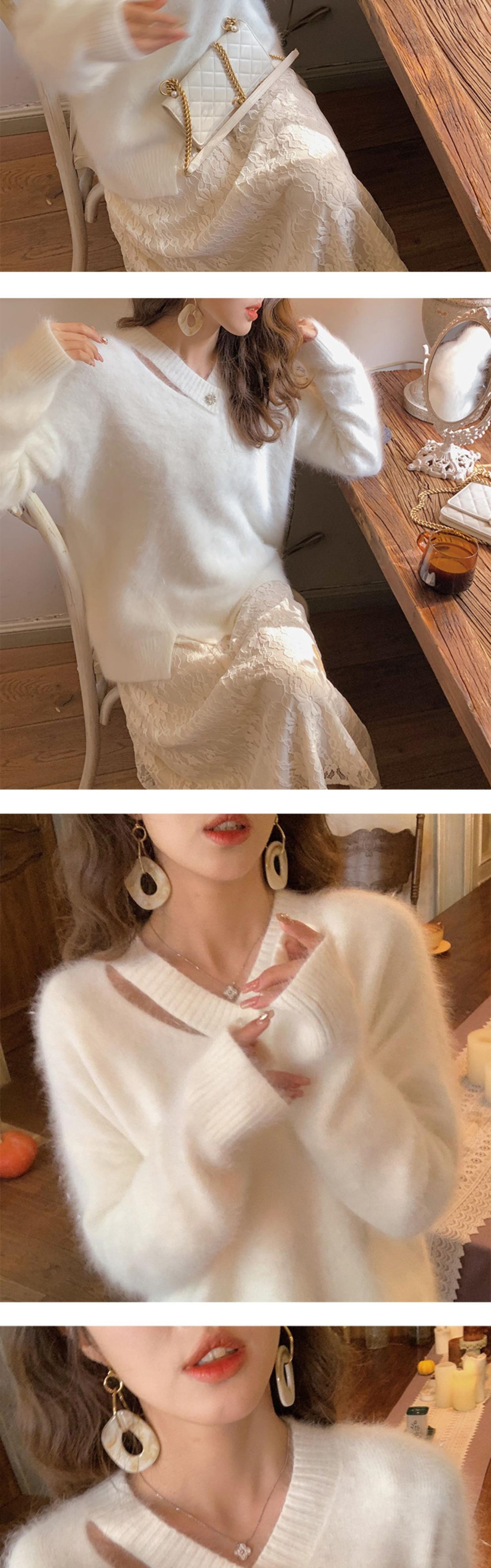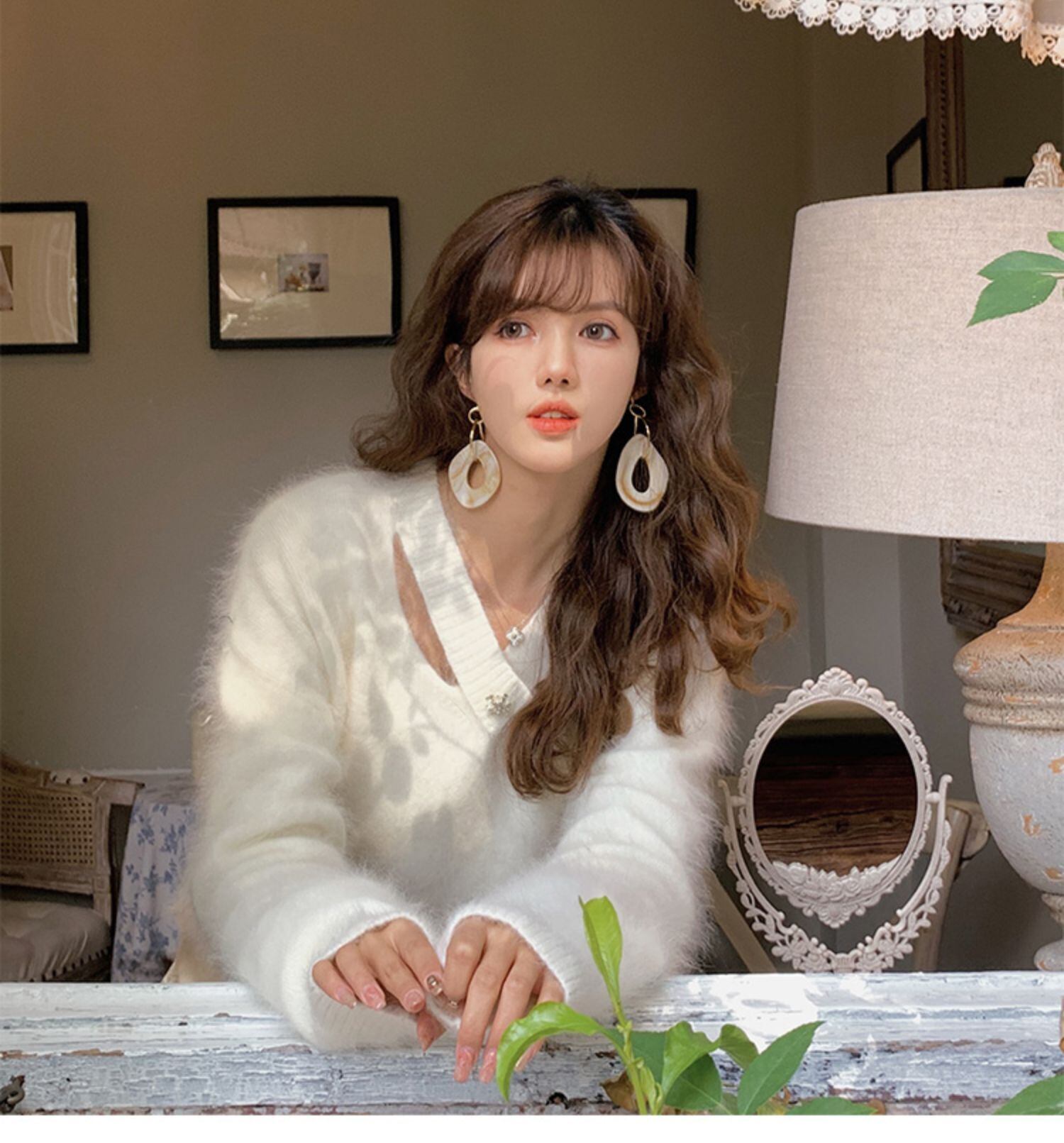 優しく、柔らかく、ワックスのようなレトロな ese 怠惰なセーターの女性の秋と冬のルーズなアウターウェアミンクベルベット V ネックのボトムスセーター オータム 秋物 ウィンター 冬物 Vネック yingd23763109328