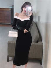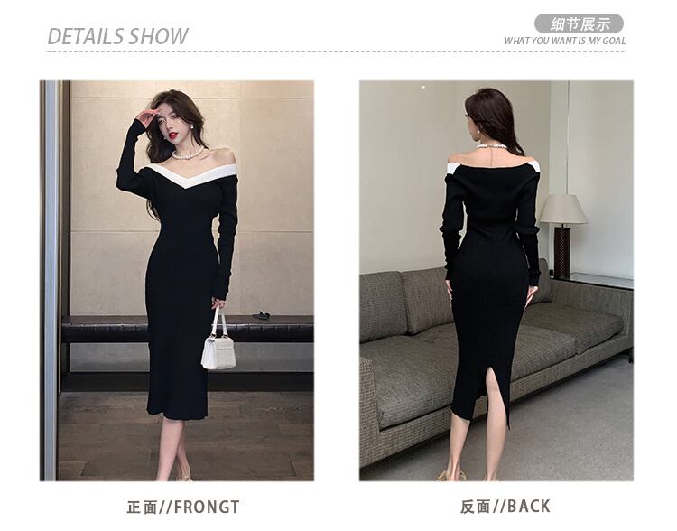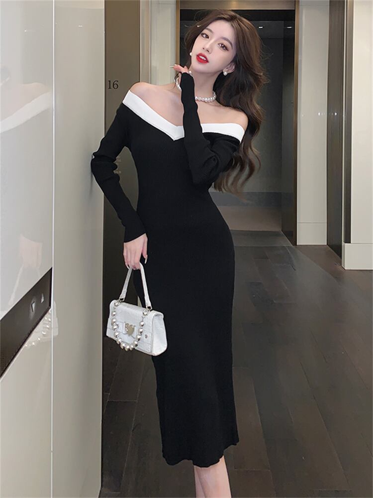 フランスのハイエンド長袖ワンショルダードレス初秋の新しい 2022 シックでユニークなスカートウエストロングスカート オータム 秋物 yingd16061058687