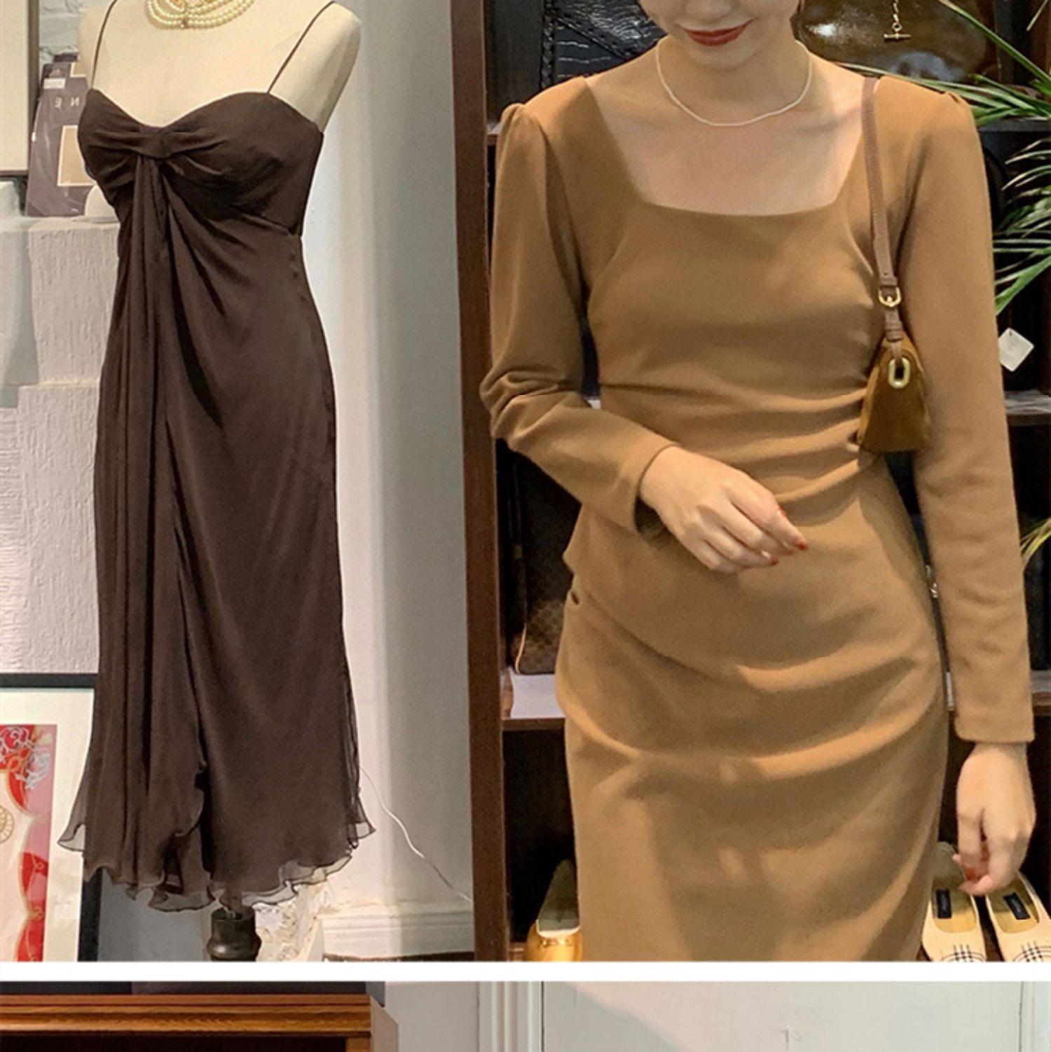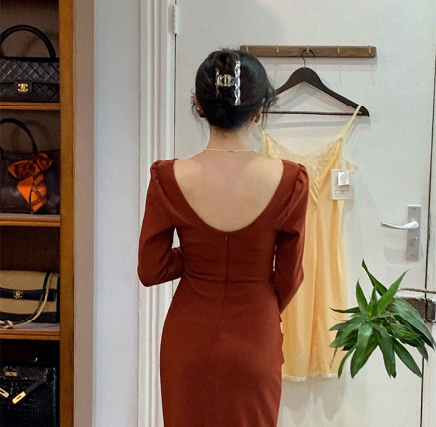 2022 新しい秋のドレススカートロイヤルシスターライトおなじみのスタイルウエストスリム気質ハイエンドフランス長袖ドレス女性 ロング オータム 秋物 yingd59148407722