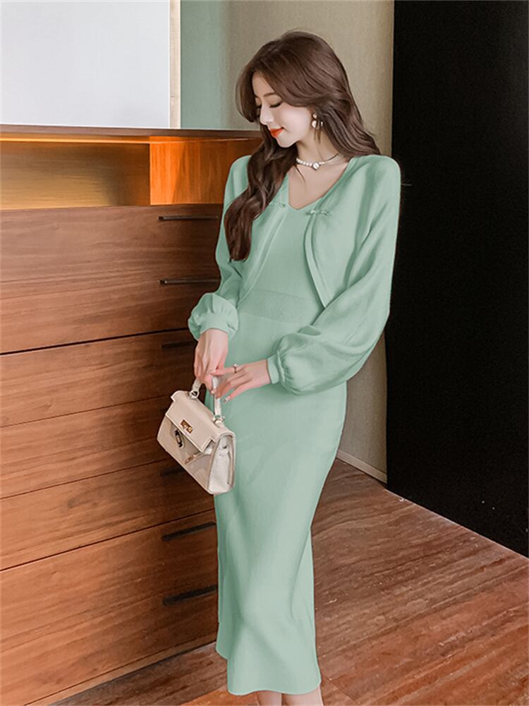 2022年秋の新作レディーススーツハイエンドセンスツーピースミルクワックス風スモールニットサスペンダードレストレンディ オータム 秋物 yingd62148657296