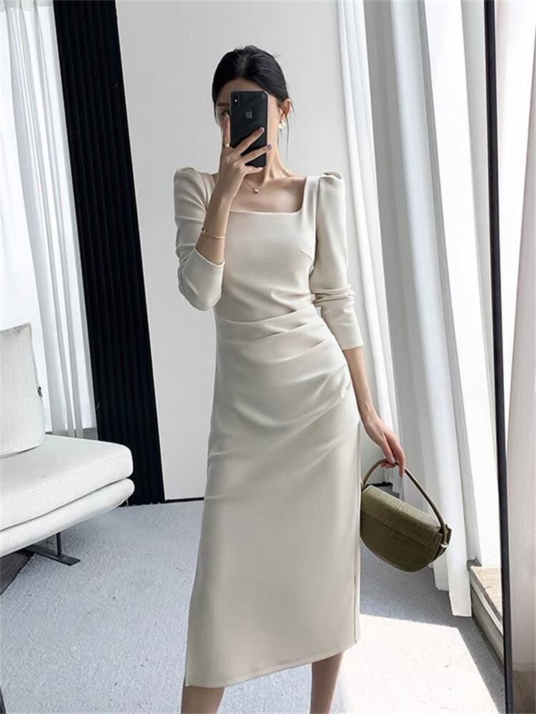 シックで美しいスカートウエスト高品質の女性の冷たい風秋新 2022 白長袖ドレスの女性 ロング ホワイト オータム 秋物 yingd52866051937