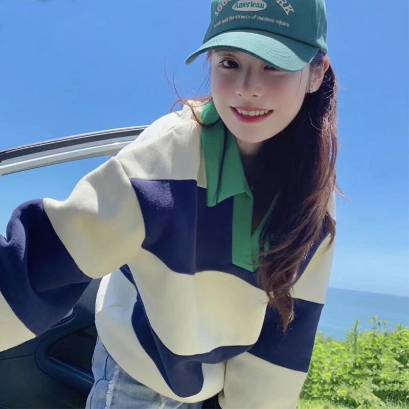 2022年秋の新しい女性のトップポロカラーシックな香港スタイルのデザインニッチ小さなストライプのセータートレンディ オータム 秋物 yingd40695824467