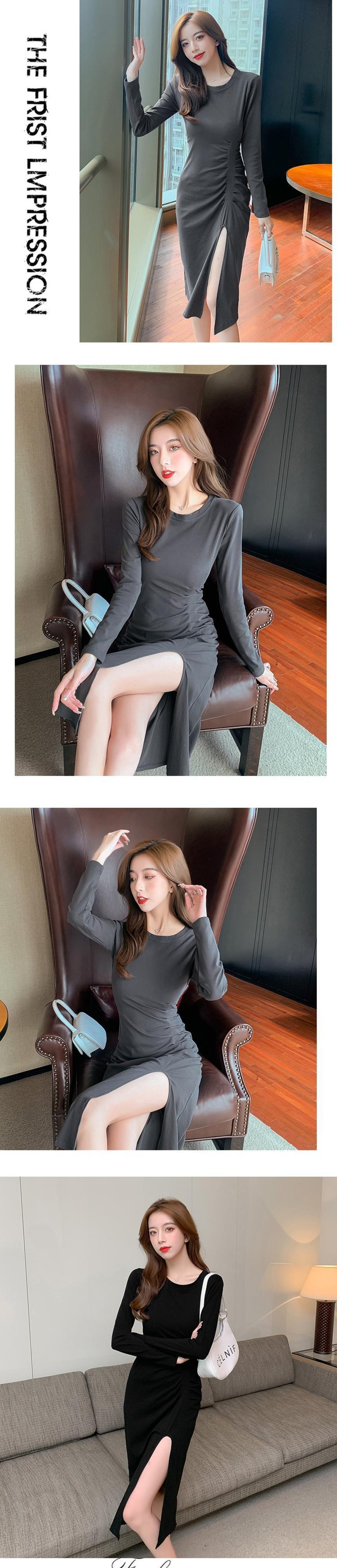 初秋の 2021 新しいスタイルのウエストと薄い気質のデザイン プリーツ オーバー ニー ロング ヒップ ドレス女性 オータム 秋物 yingd40784943933