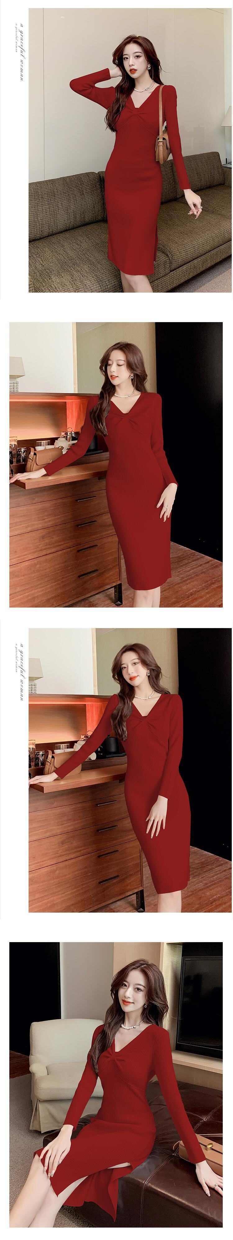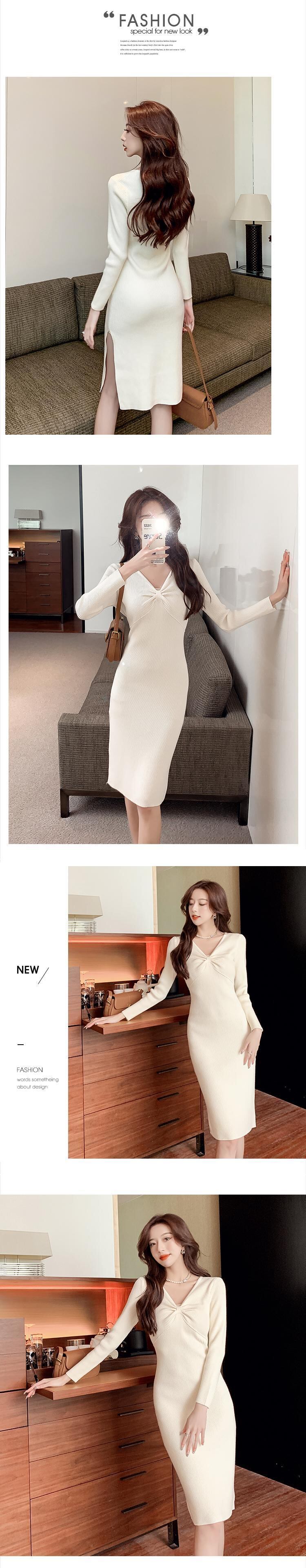2022 秋冬新作フレンチハイエンド婦人服寒風セーターニット V ネックドレスウエストロングスカートトレンド オータム 秋物 ウィンター 冬物 Vネック yingd7439535632