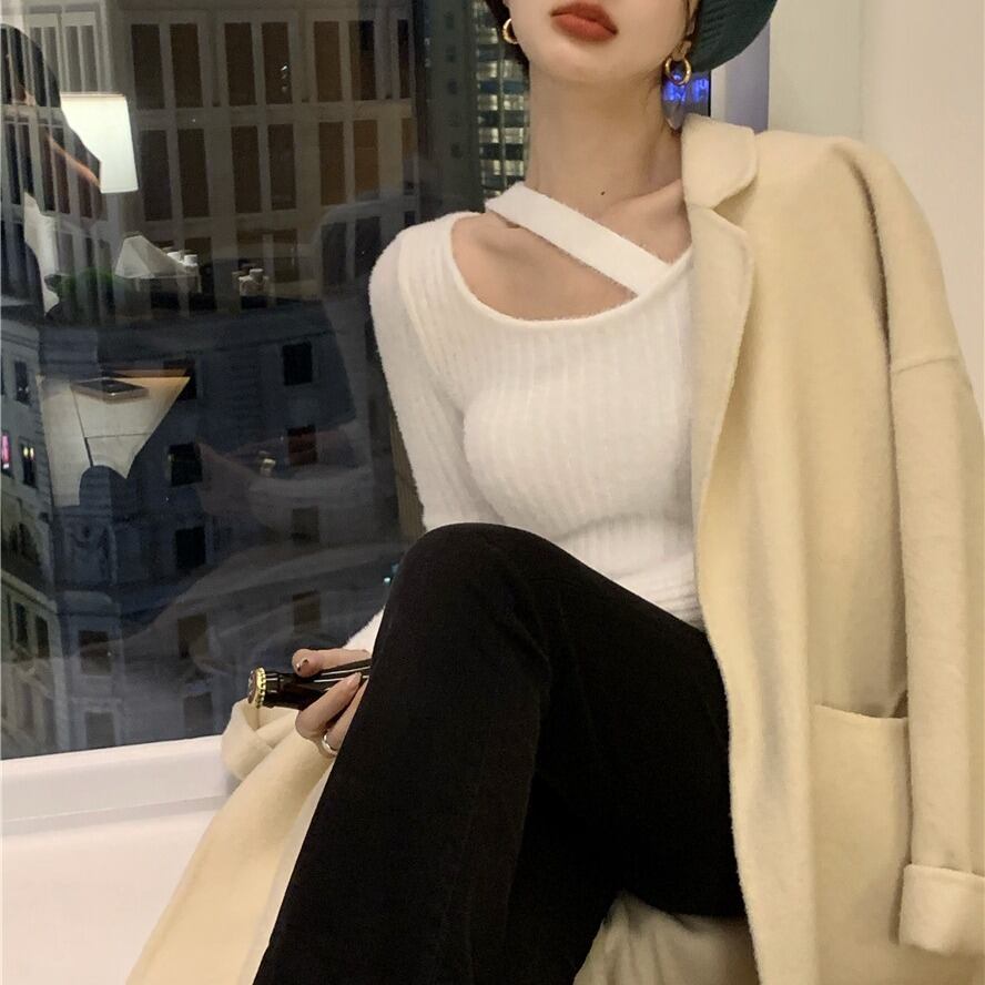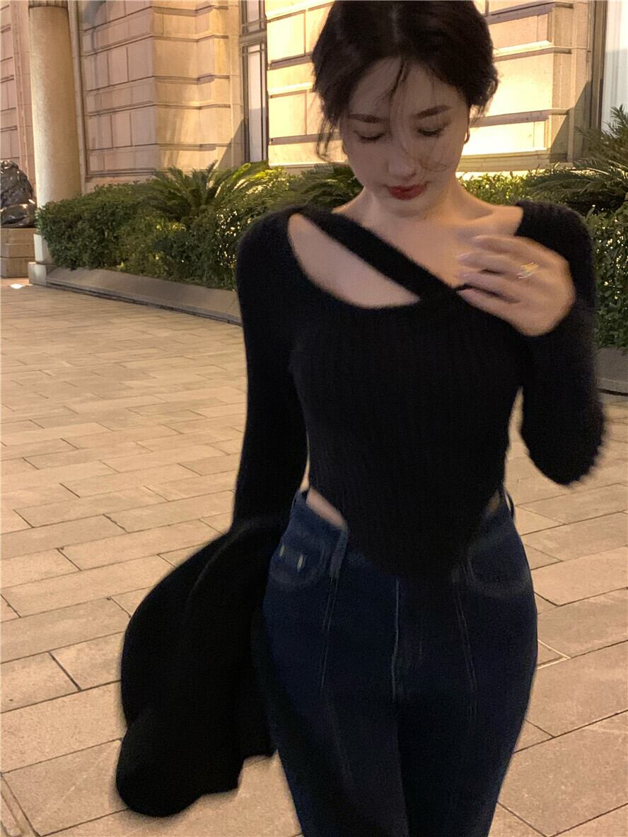 シックで甘くてスパイシーなセーター ボトムス シャツ レディース eign スタイル イレギュラー ショート ニット セーター トップ 大人ガーリー スウィート キュート カジュアル yingd73054319578