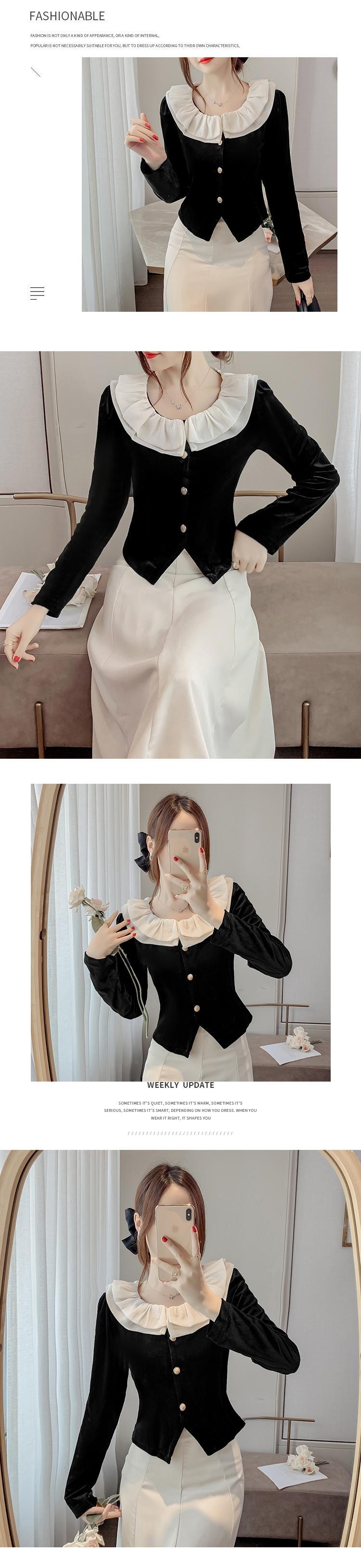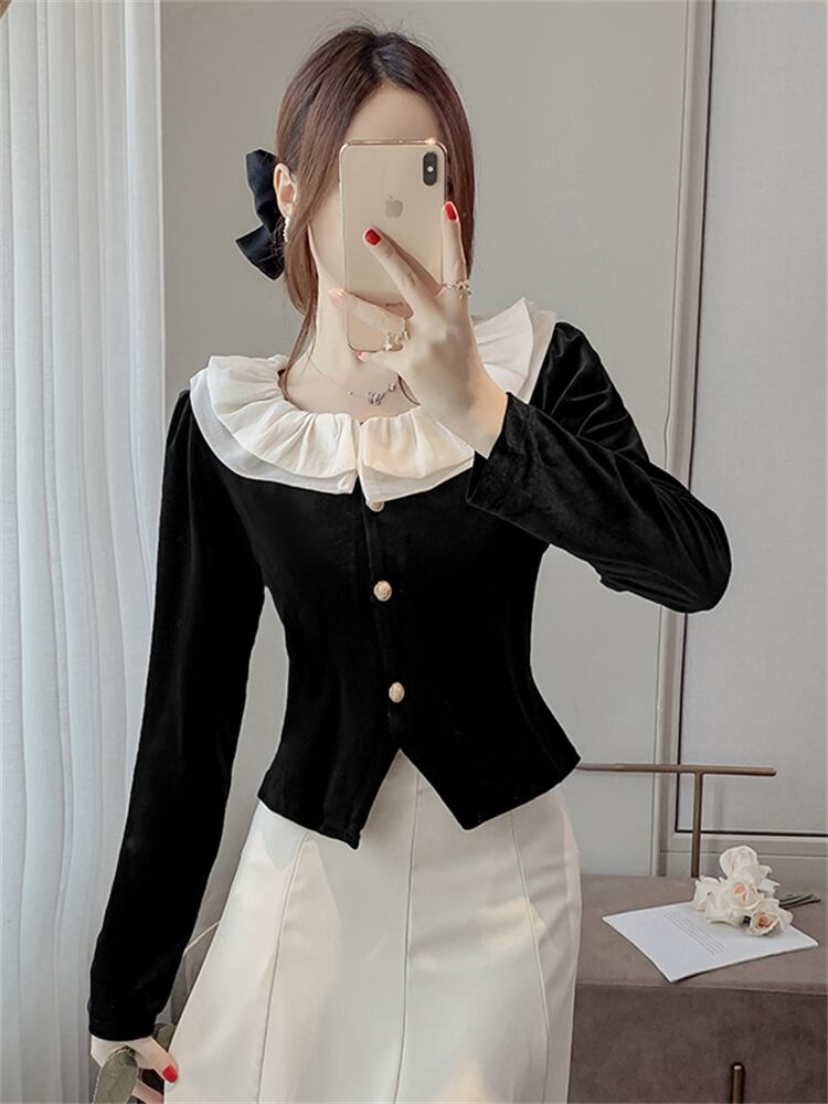 秋の人形の襟シャツデザインセンスニッチシャツ 2022 新しい女性の金のベルベット長袖シフォンシャツトップ ロング オータム 秋物 yingd5770067372