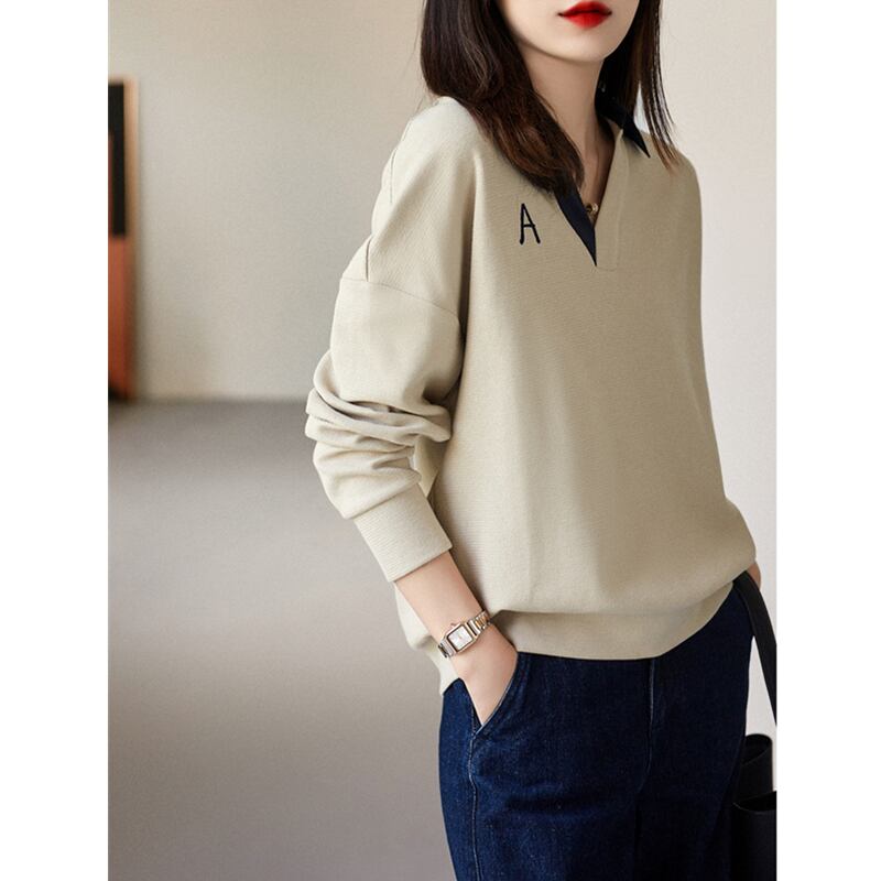 香港スタイルのレトロなシックなトップの秋のゆったりとした怠惰なスタイルのポロカラーのセーターの女性のデザインセンスのニッチなセーターのジャケットの潮 オータム 秋物 yingd37234276989