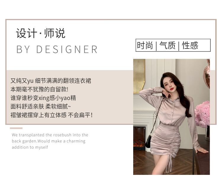 2022 新秋ドレス気質女神ファンセクシーなサテンパンヒップシャツスカートフレンチハイエンド長袖ドレス ロング オータム 秋物 yingd12949370370