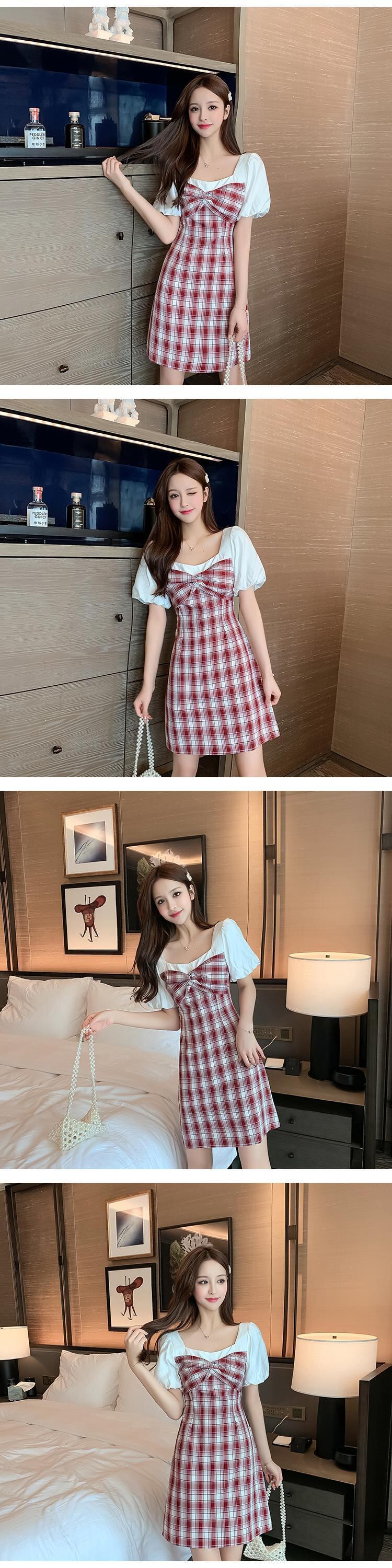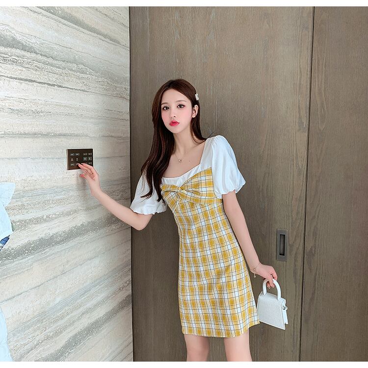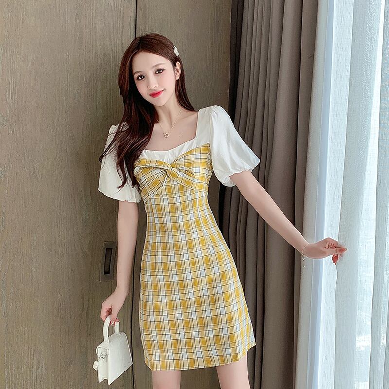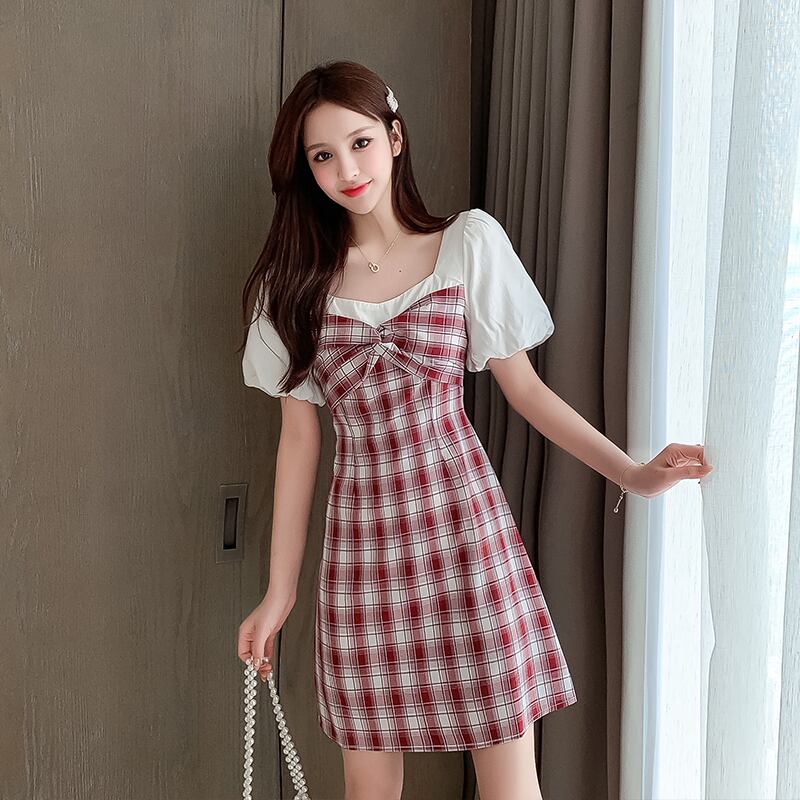 スカートの女性の夏 2021 新しいウエストと薄い気質桔梗スカート初恋小さな半袖スクエアネックのドレスの女性 サマー 夏物 フラワーデザイン スクウェア yingd16823465227