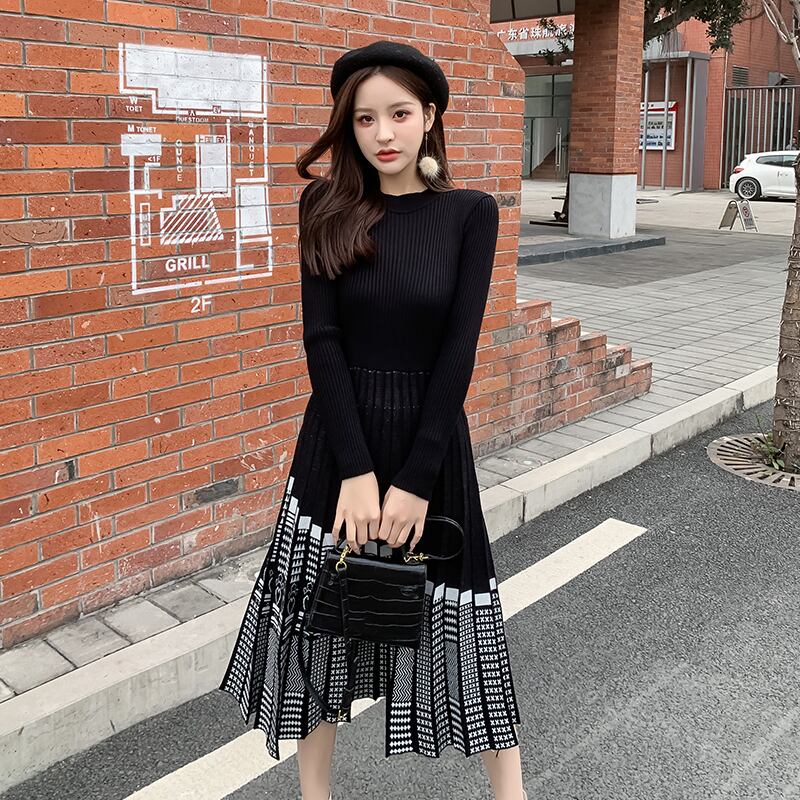 フランスのレトロなシックなデザイン センス ニッチ ニーハイ セーター ドレス ヘップバーン スタイル ハイエンド ジャカード ニット ドレス女性 yingd93020953409