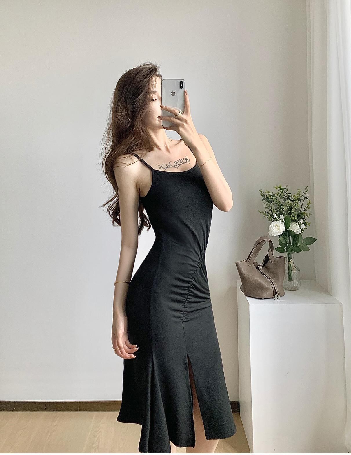フランスのレトロなヘップバーン スタイルのスプリット ブラック ドレス スリム フィットとスリムな気質のデザイン パッケージ ヒップ サスペンダー ドレス女性の夏 サマー 夏物 yingd84393863021