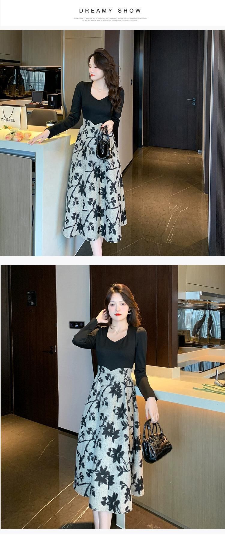 フレンチティーブレイク花柄長袖ドレスハイエンド婦人服冷風シックな美しいスカートウエストロングスカート女性 yingd51746446993