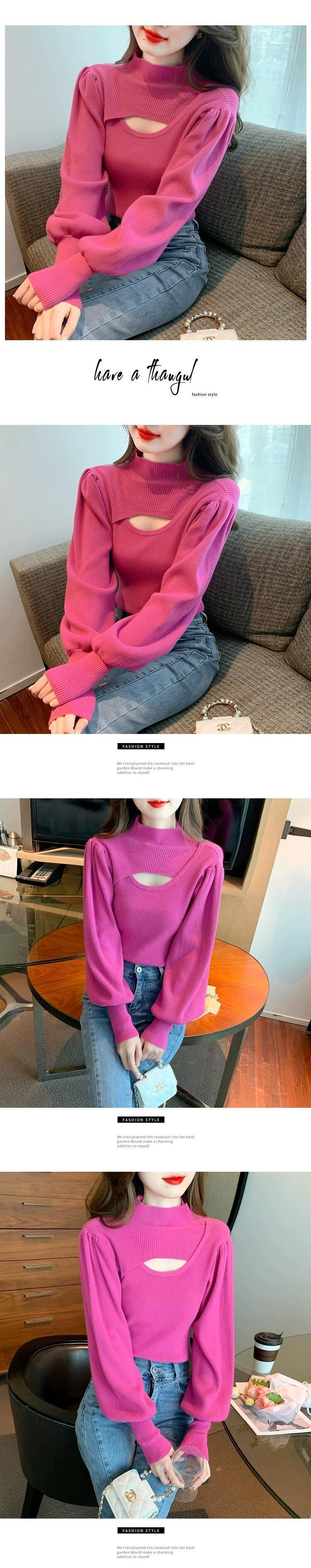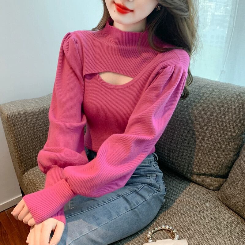 -終了超見栄えの良いトップスフレンチニットウェア女性秋と冬のデザインランタンスリーブ中空プルオーバーセーター女性 オータム 秋物 ウィンター 冬物 yingd25164036169