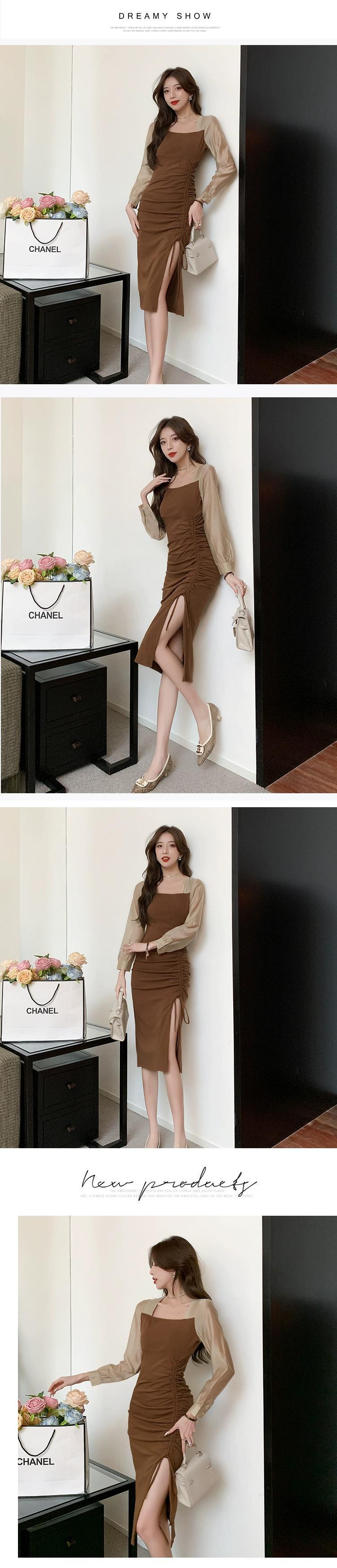 2023 初秋のレディースファッションコールドスタイル高級ドレス気質セレブハイエンド小男スリットロングスカート オータム 秋物 yingd94263856712