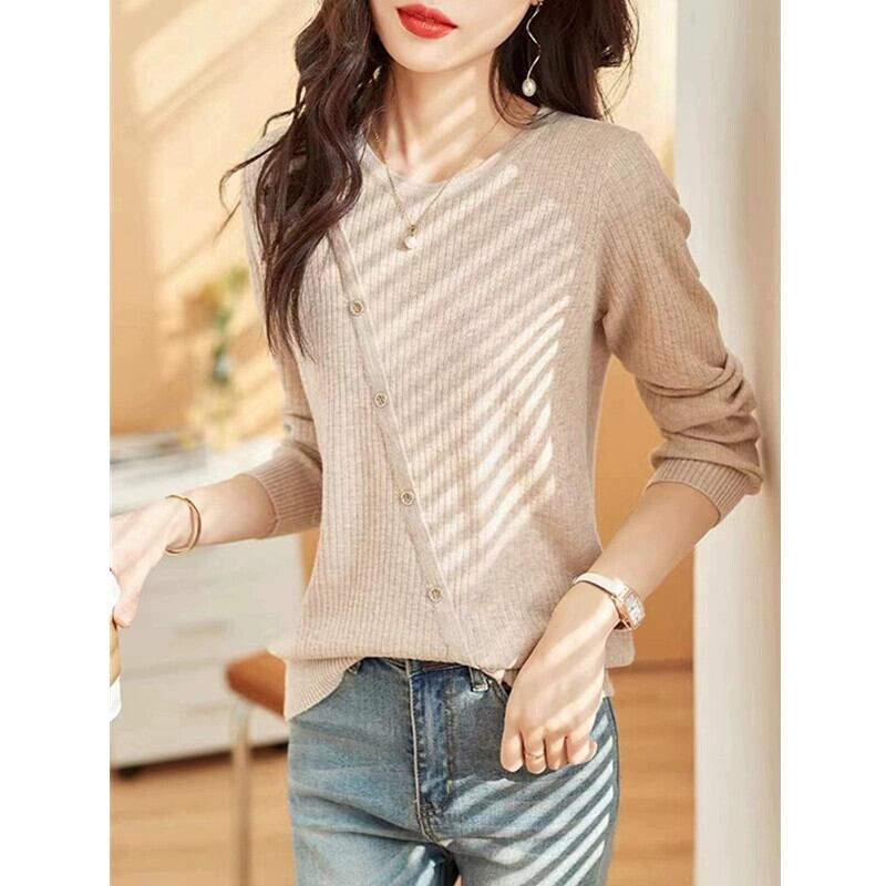 今年の人気の美しいトップス秋のニッチデザインセーター怠惰なスタイル2023新しい小さなシャツ年齢を減らすボトリングシャツ オータム 秋物 yingd26417896461