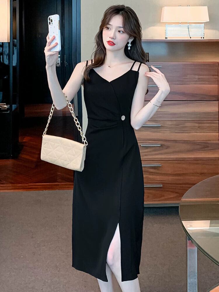 純粋な欲望スタイルのセクシーなサスペンダースカート女性のニッチデザインセンススリムハイウエストスリットサスペンダードレス 2023 新しい ハイウェスト yingd66213766958